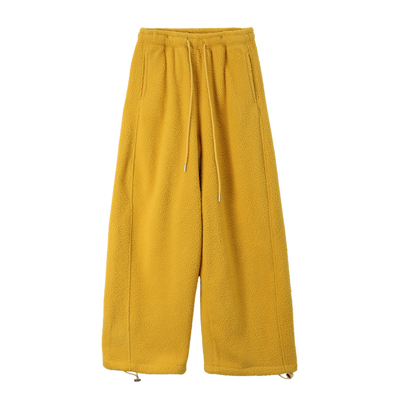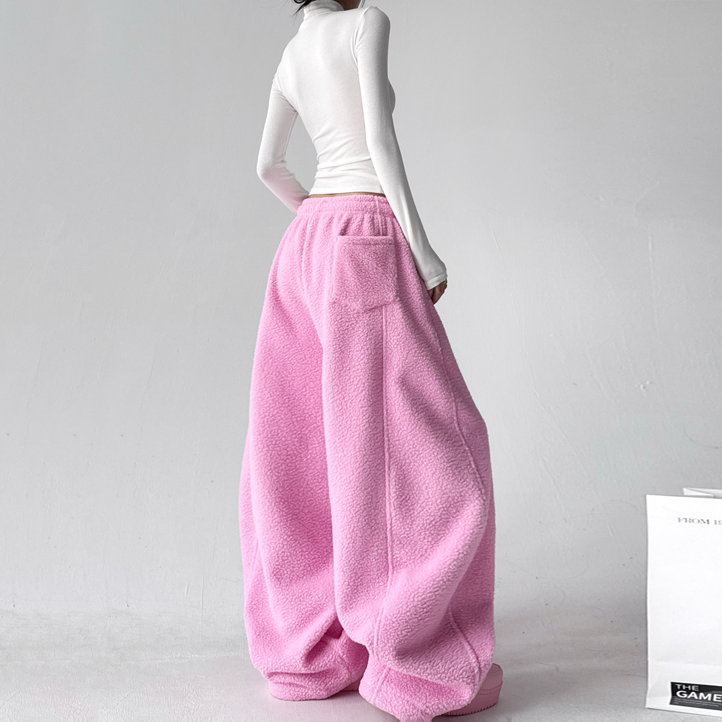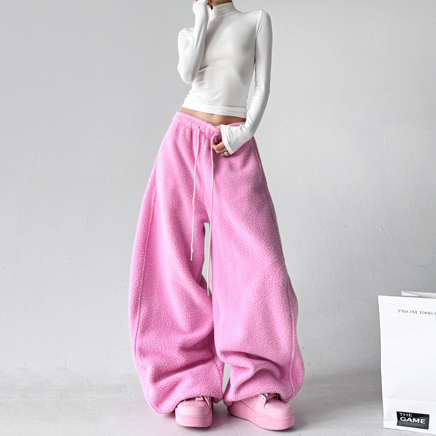 多巴胺粉色摇粒绒运动裤女2025秋冬加绒加厚高级感宽松阔腿束脚裤