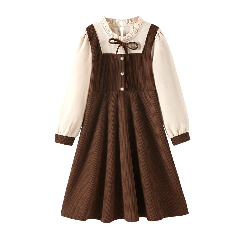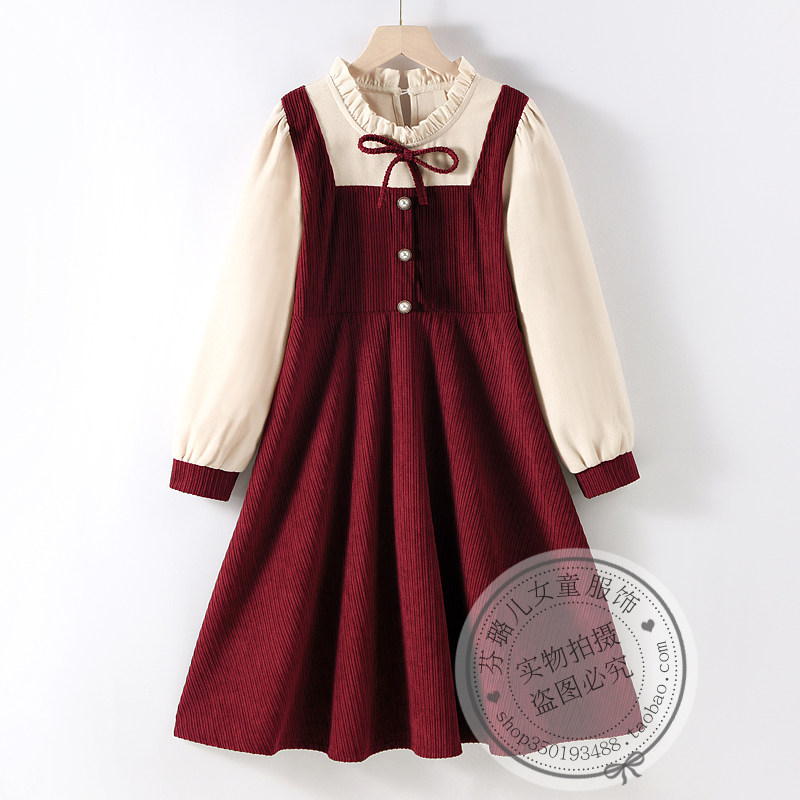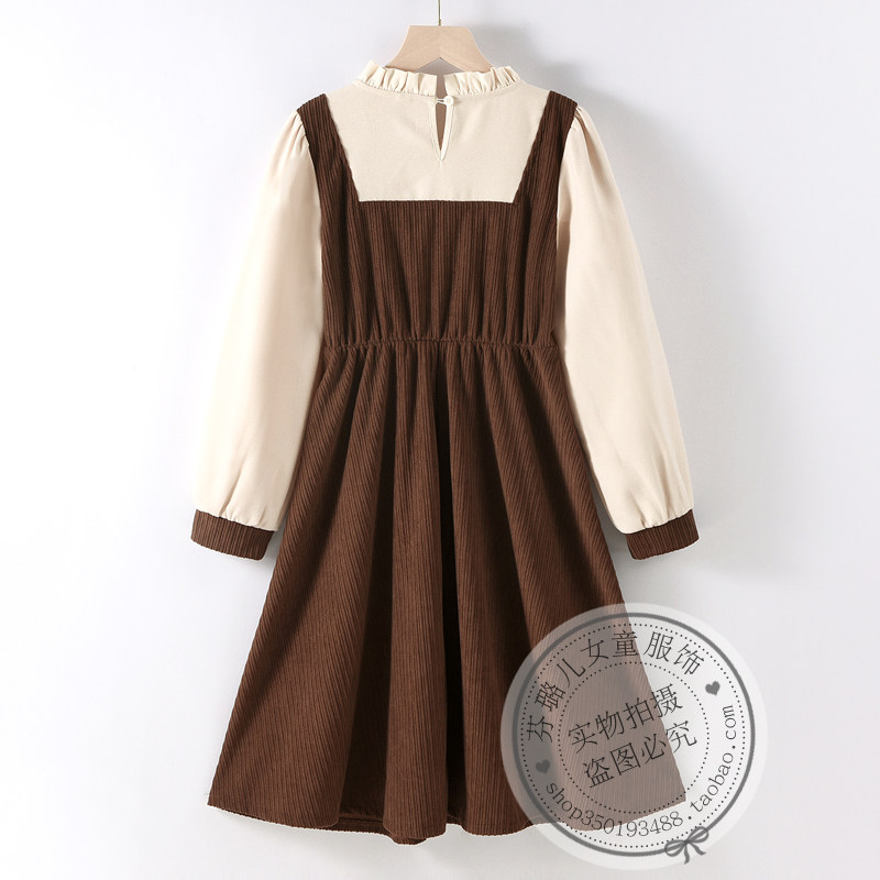 女童假两件连衣裙秋装中大童女孩灯芯绒冬款裙子学院风儿童公主裙