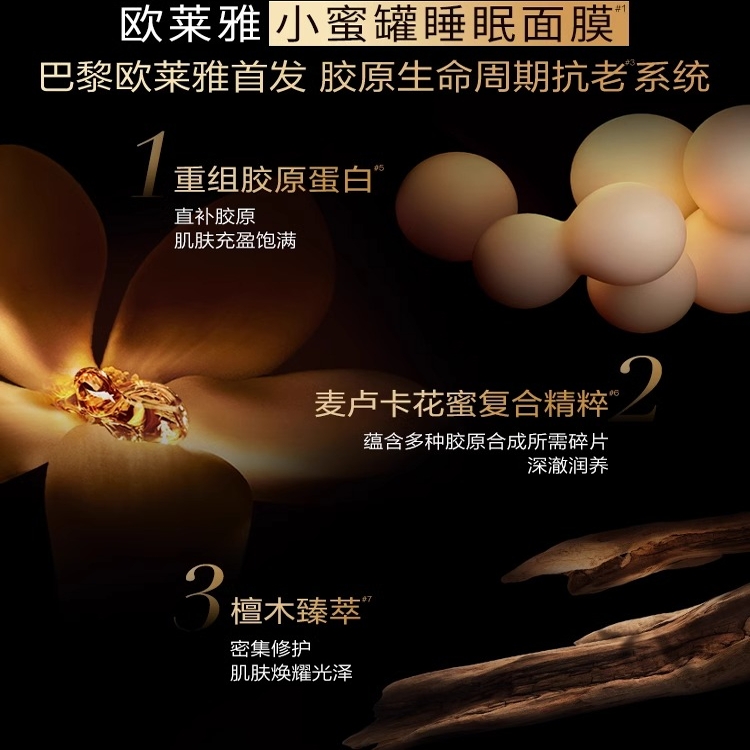 欧莱雅金致臻颜小蜜罐花蜜胶原睡眠面膜紧致提拉抗皱修护保湿滋润