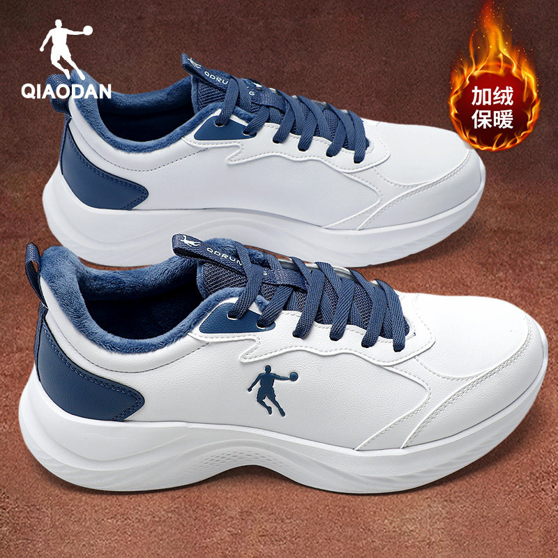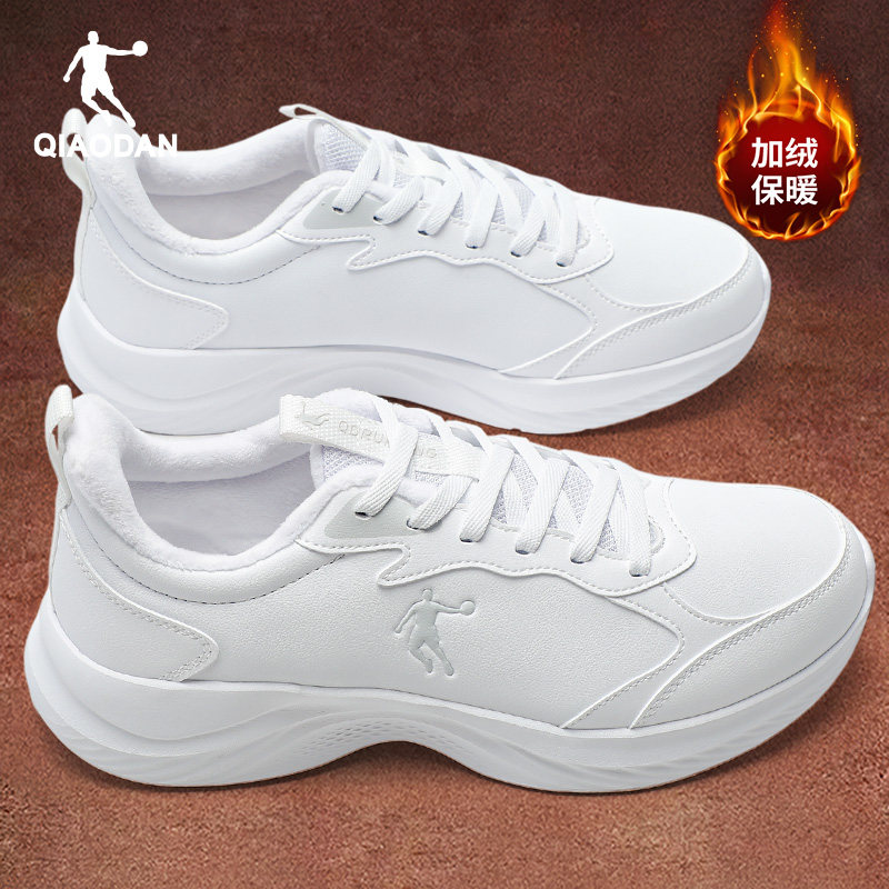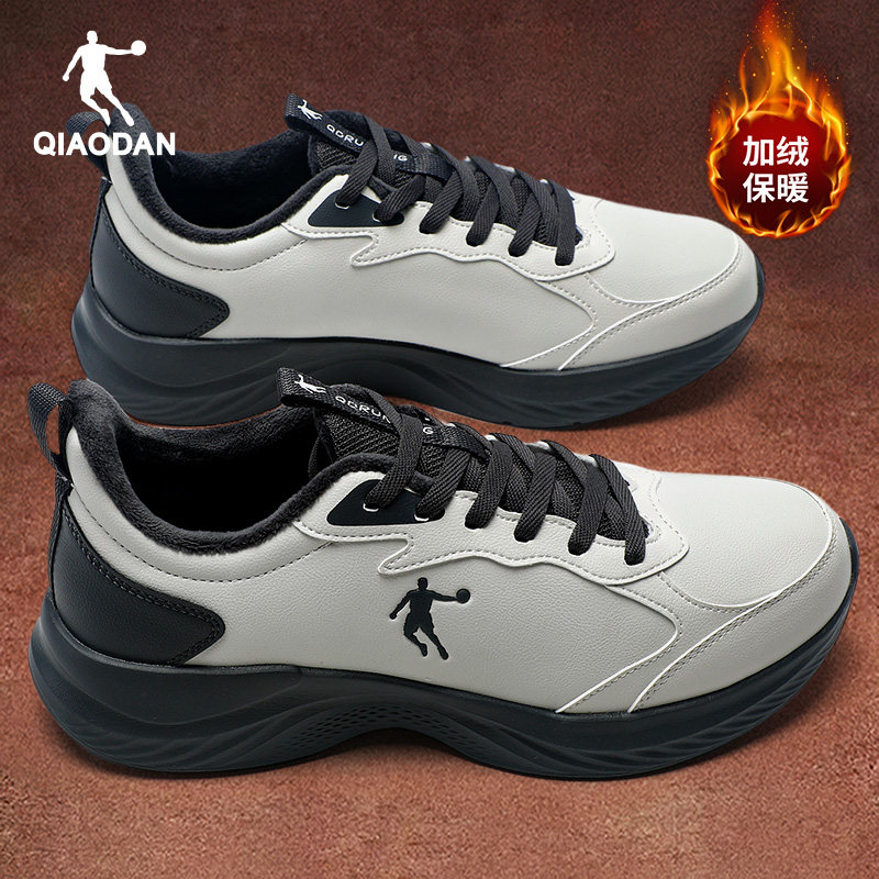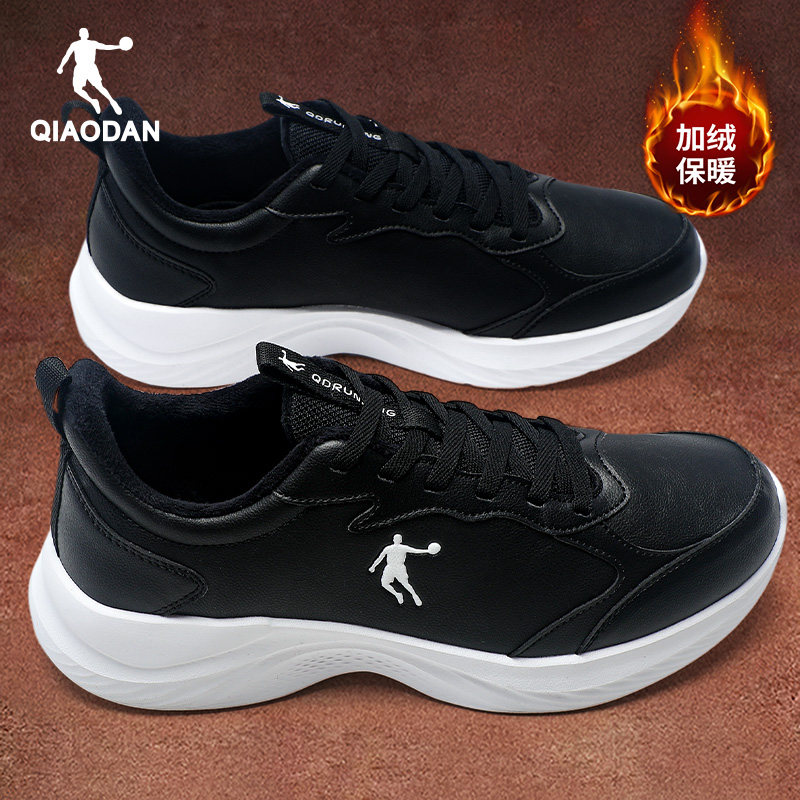 乔丹男鞋冬季加绒休闲跑步鞋官方正品黑色皮面防水运动鞋男款鞋子