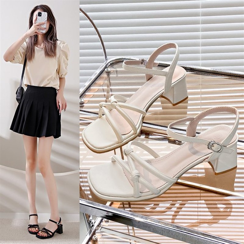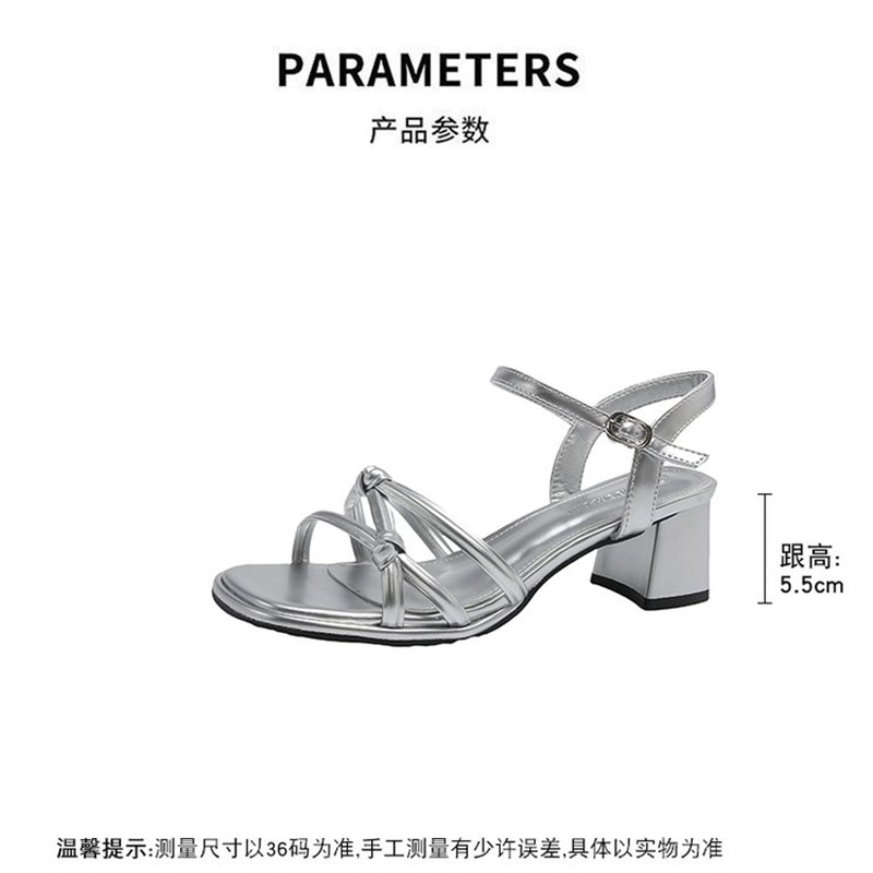 粗跟仙女风凉鞋女2024夏季新款中跟一字带法式气S质露趾高跟鞋凉