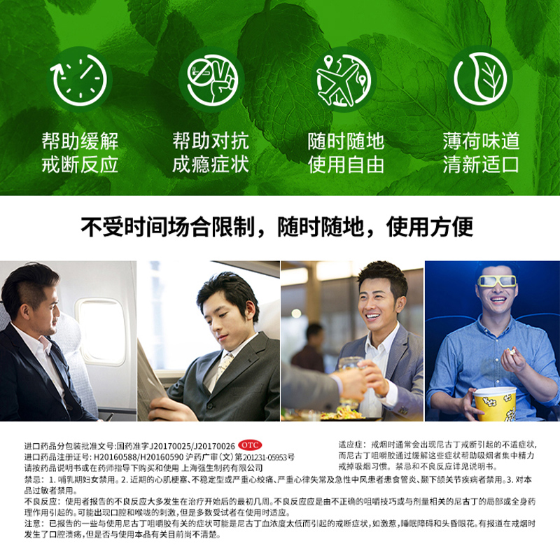 力克雷nicorette尼古丁咀嚼胶戒烟神器4mg*30片戒烟口香糖清肺糖