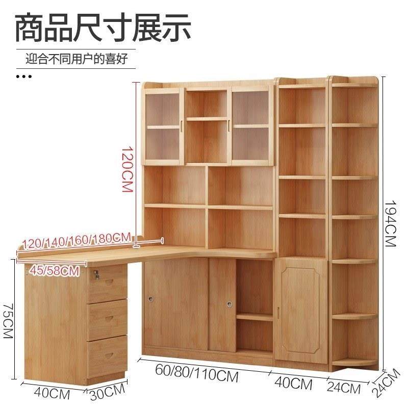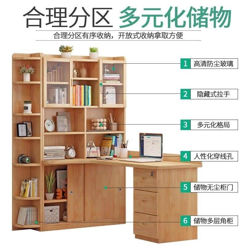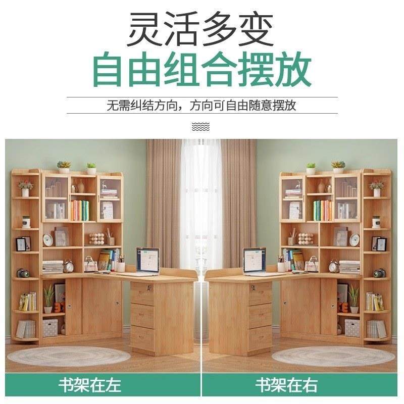 艾比森实木转角书桌书架一体组合学生儿童学习卧室书房办公台式桌
