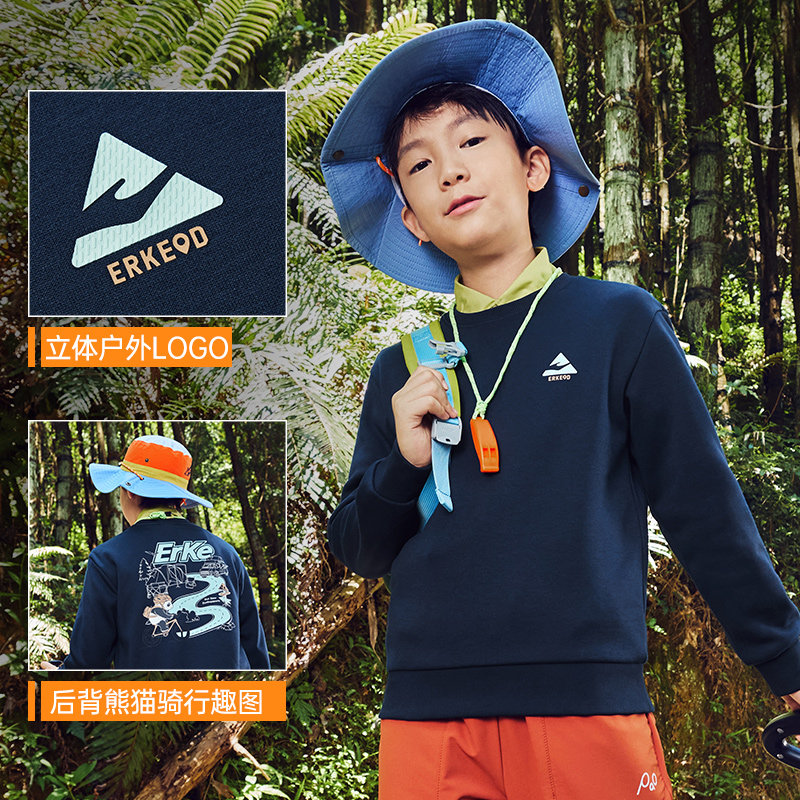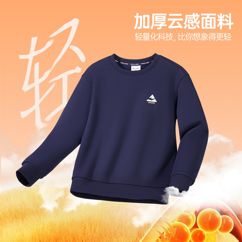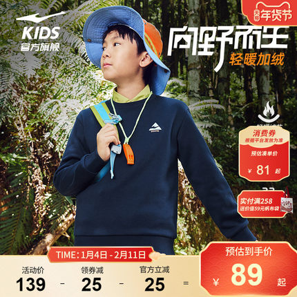 鸿星尔克童装男童加绒卫衣2025春秋款大童运动上衣女童长袖套头衫