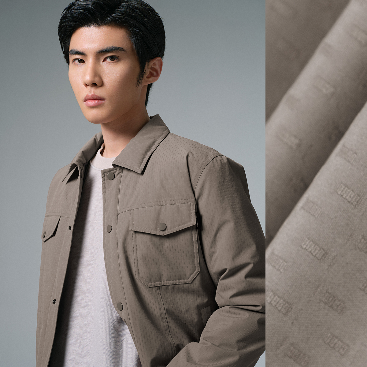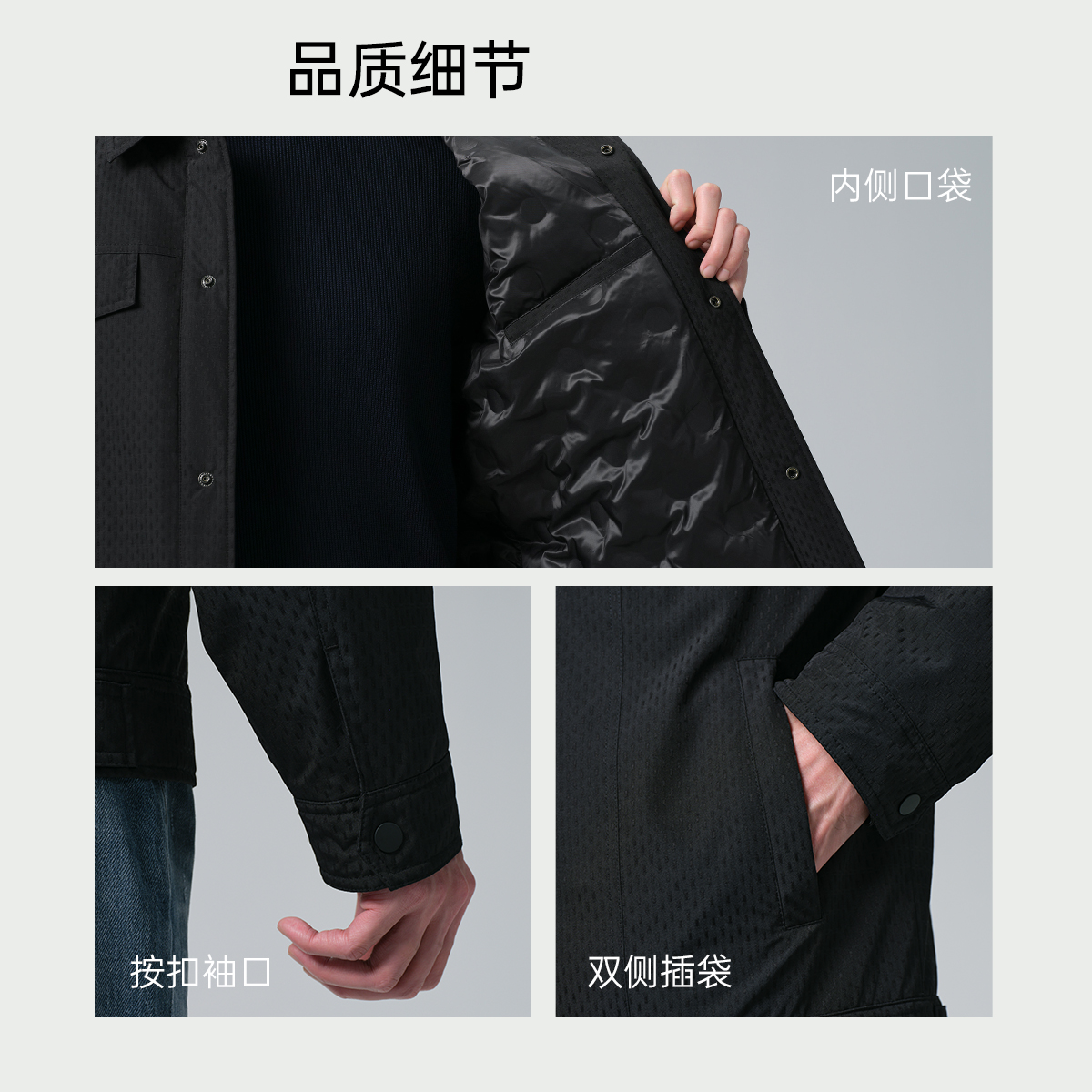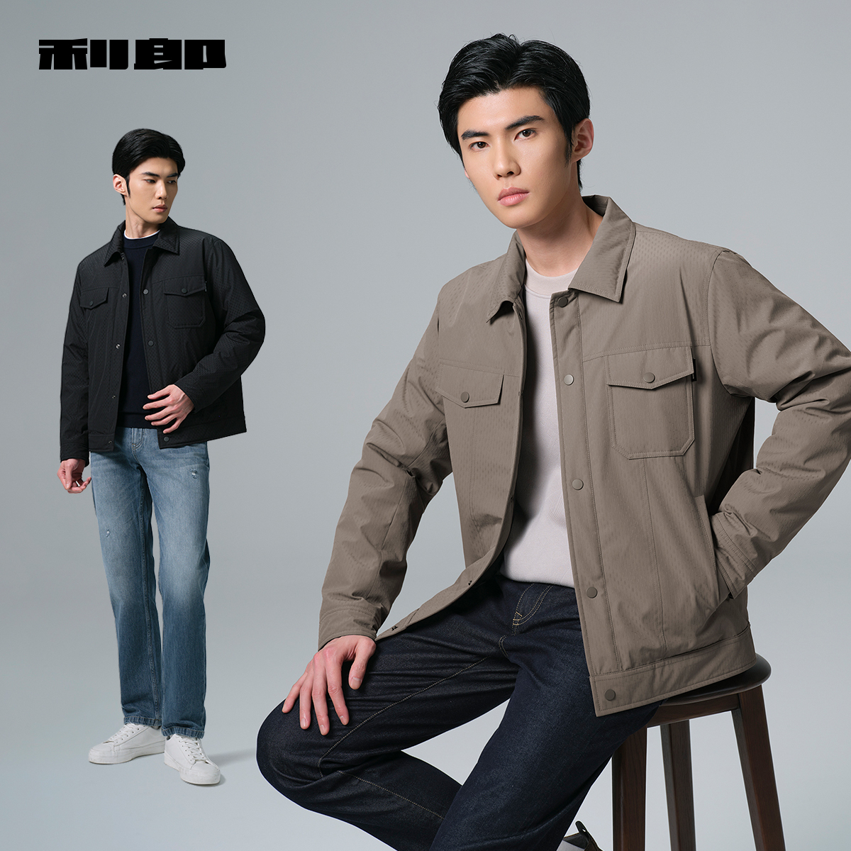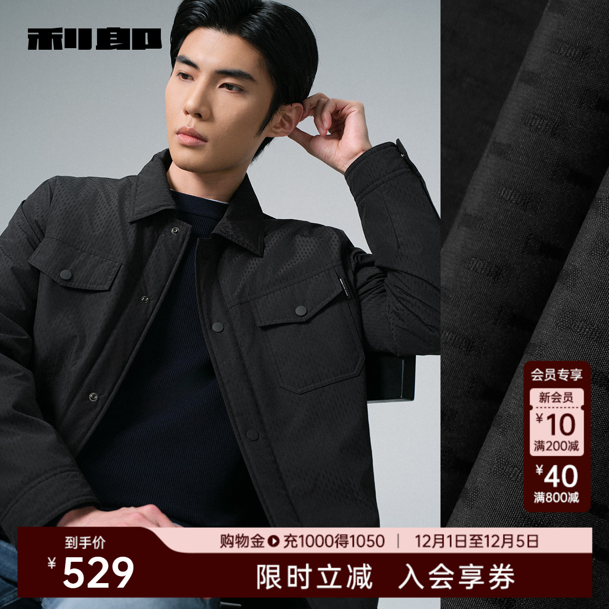 利郎官方衬衫羽绒服短款男2025冬季休闲男装肌理提花茄克翻领外套