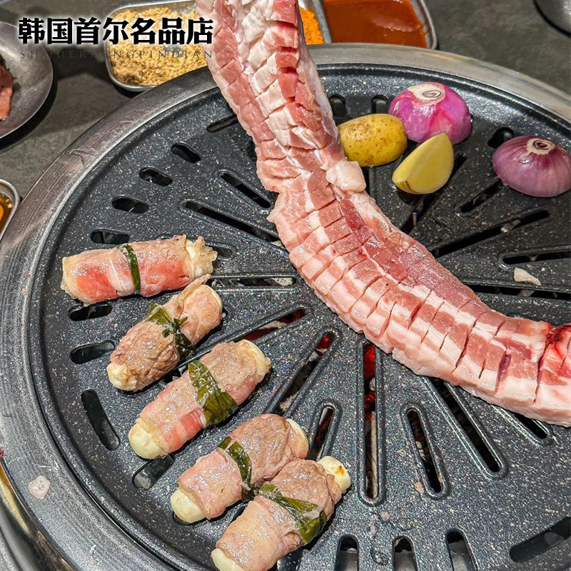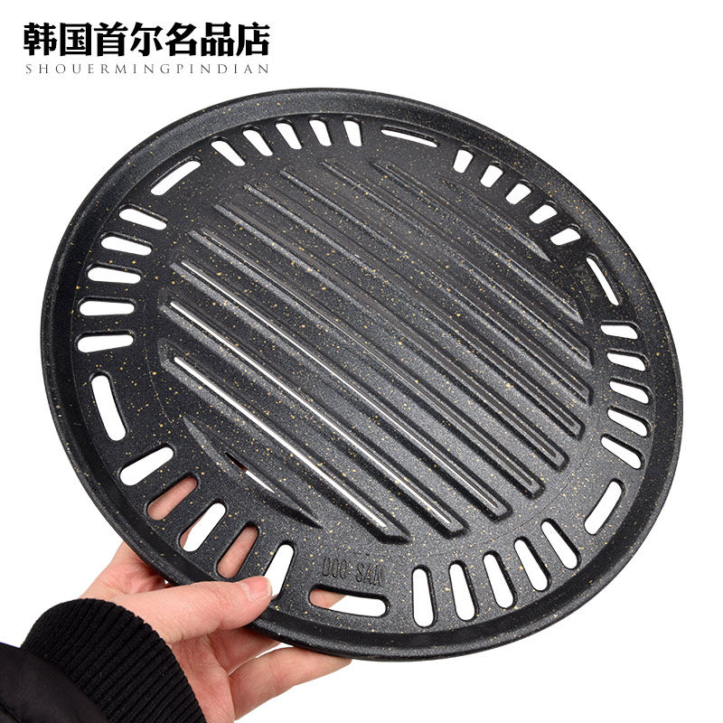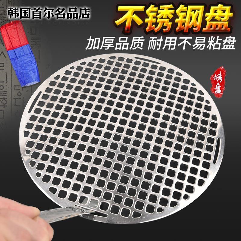 韩式烧烤盘商用烤肉店不锈钢煎肉盘圆形不粘烤盘295加厚烤肉煎盘