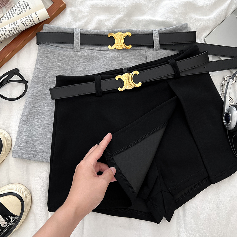 设计感时尚百搭高腰显瘦开叉不规则裤裙休闲裤短裤热裤女配皮带