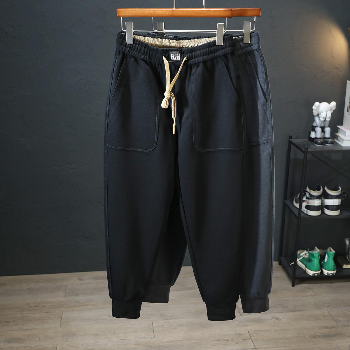 秋季黑色休闲裤男士潮牌抽绳针织运动裤子宽松哈伦九分束脚卫裤男