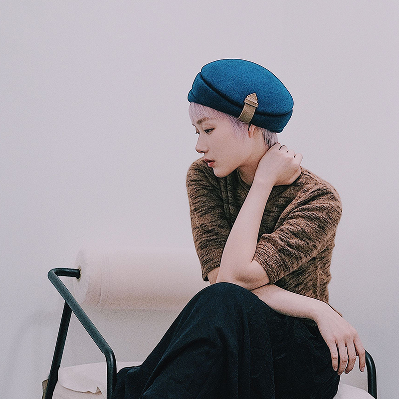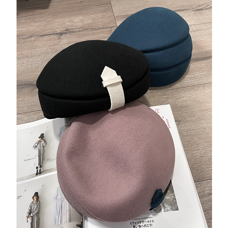 Lion~乔西 学院风绊扣装饰羊毛呢立体褶皱贝雷帽画家帽秋冬女