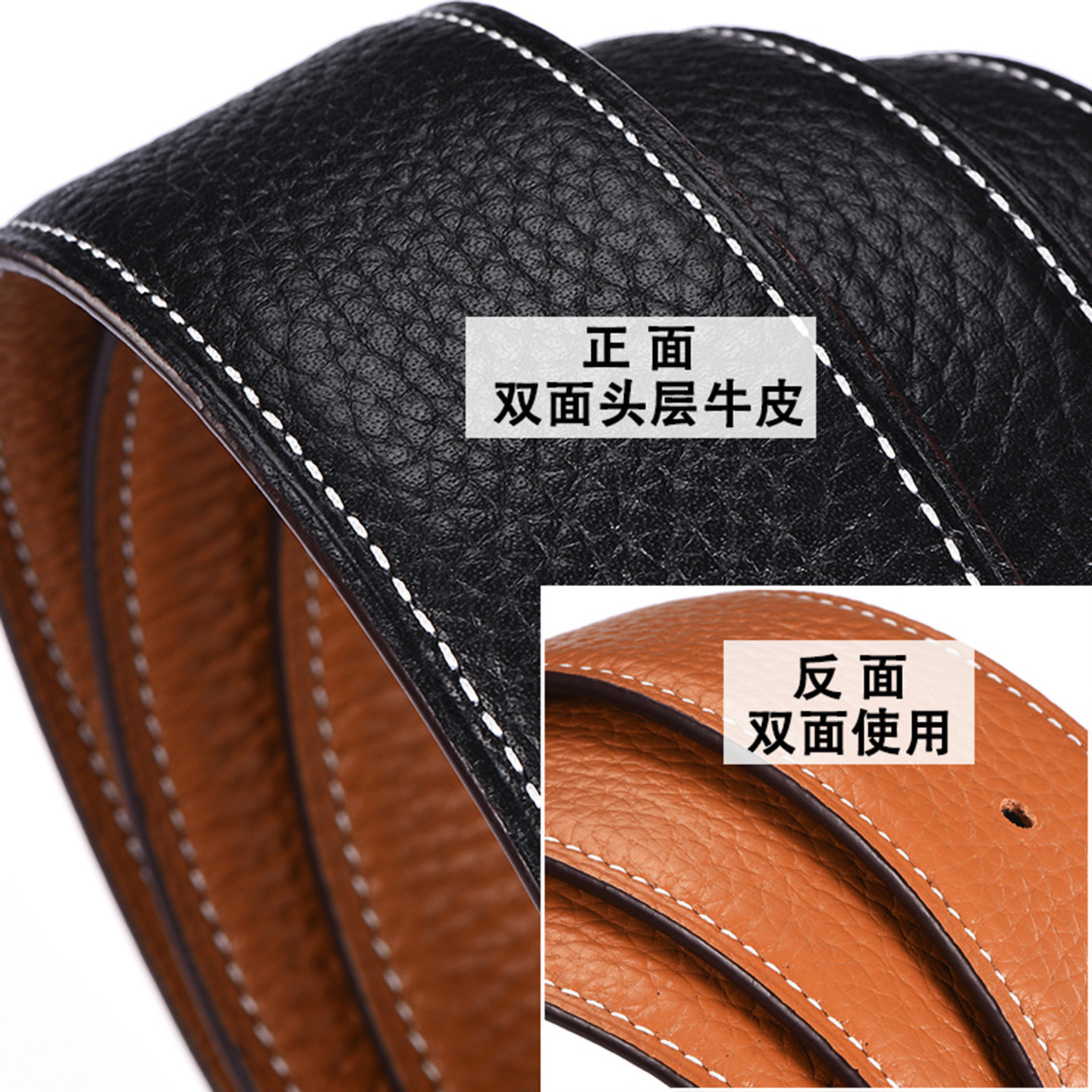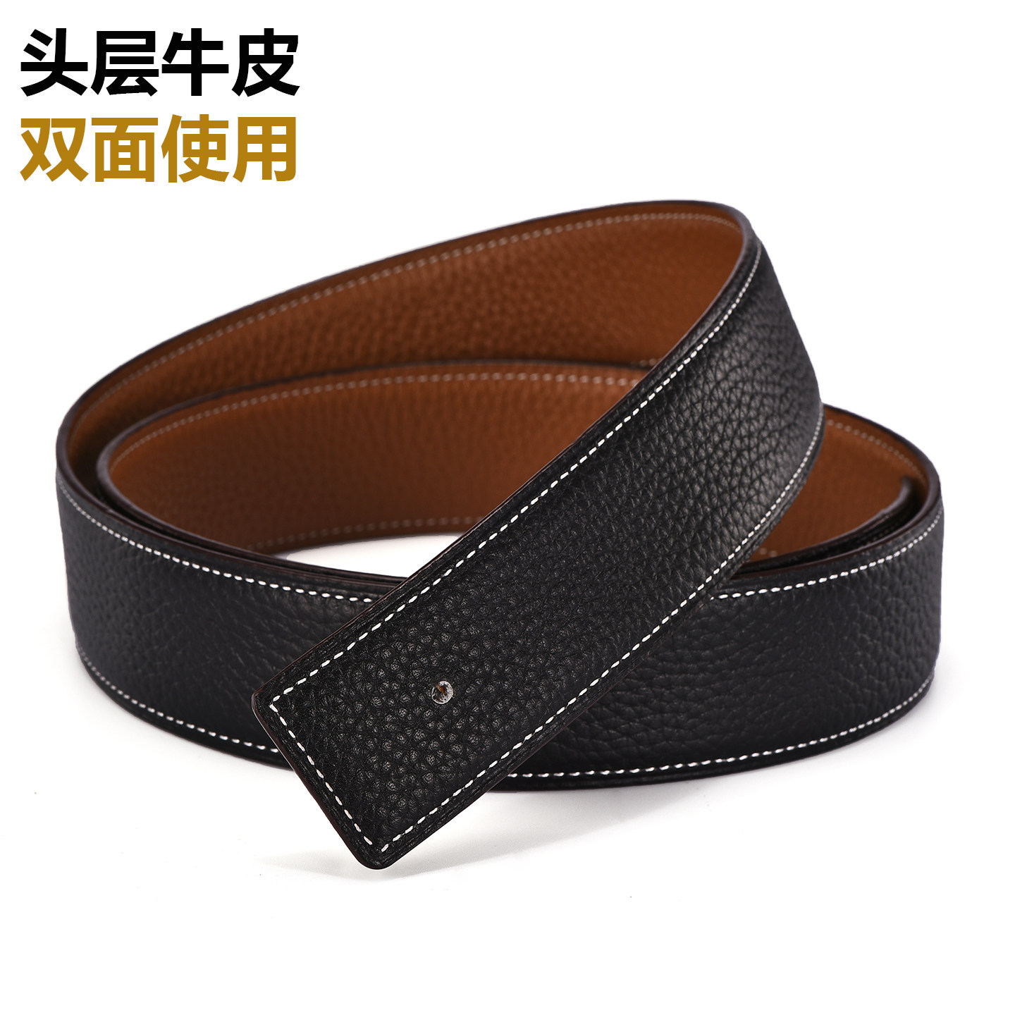 H扣无头皮带替换皮带双面真皮牛皮男士3.8cm不带头裤带条头层腰带