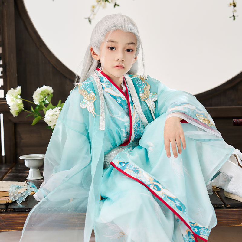 十三余童装[长相思相柳联名-寒月深澜]汉服男童古风套装新款
