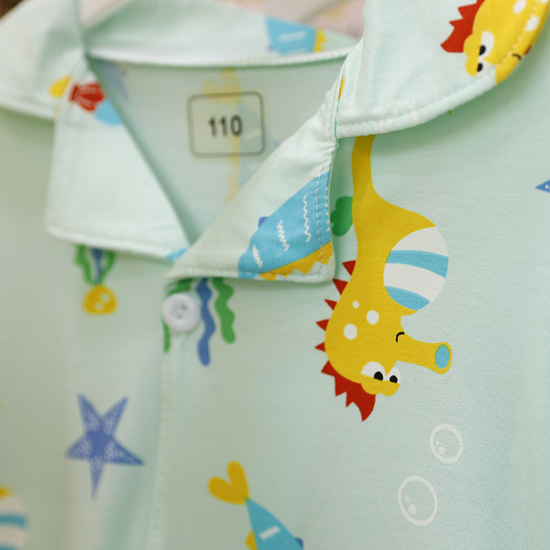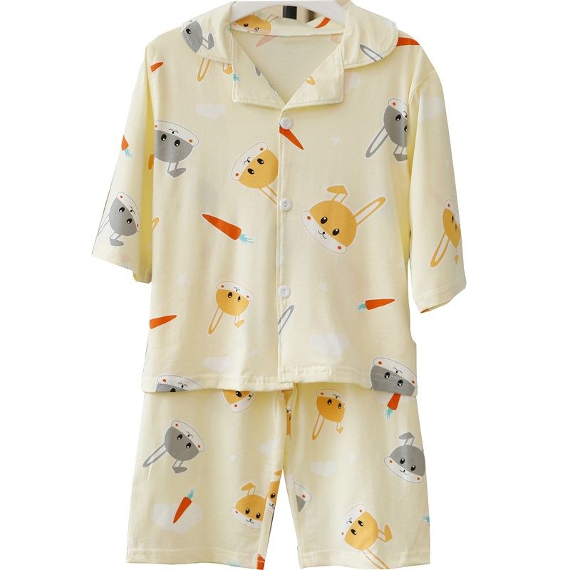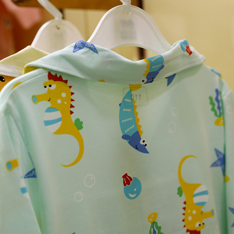 儿童冰岛棉开衫中长袖薄款夏季男童女童家居服宝宝卡通睡衣空调服