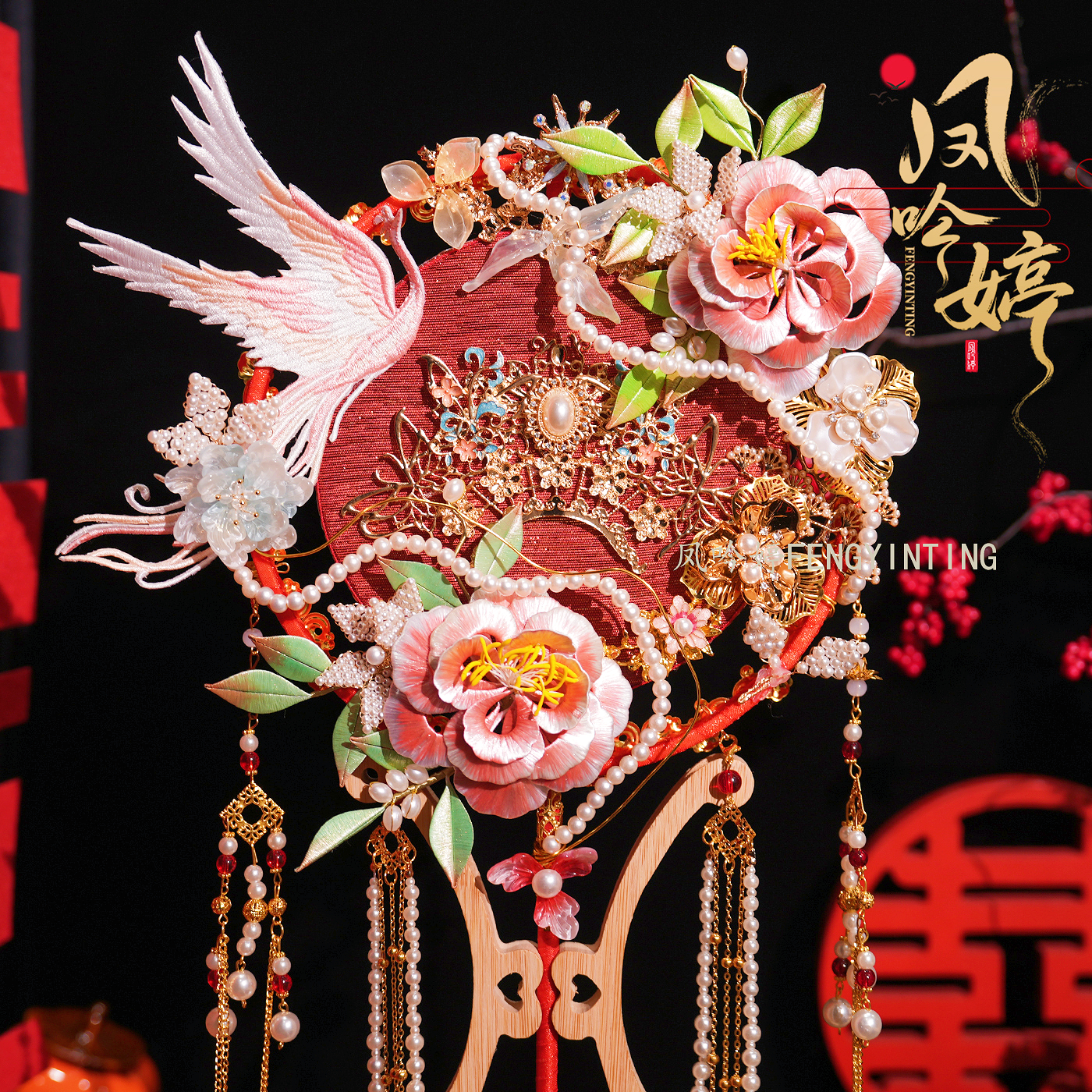 红色缠花团扇新娘结婚成品手工喜扇秀禾服中式新品高级遮面成品扇