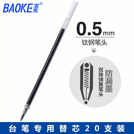 宝克台式签字笔芯黑色0.5mm双珠防漏墨笔头银行柜台笔替芯PS2240