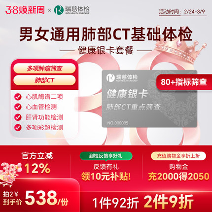 【肺部CT深度筛查】瑞慈体检卡 健康银卡套餐肿瘤肝肾男女士通用