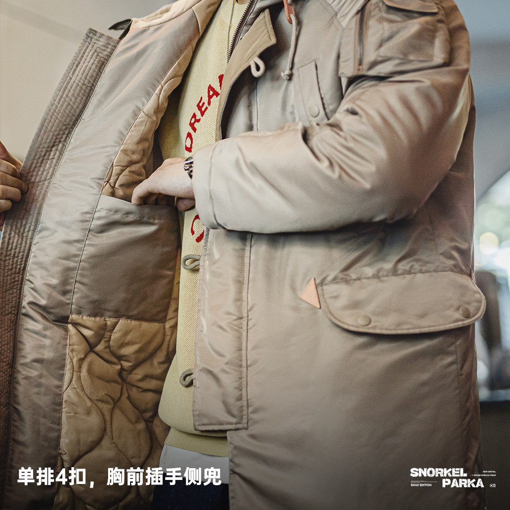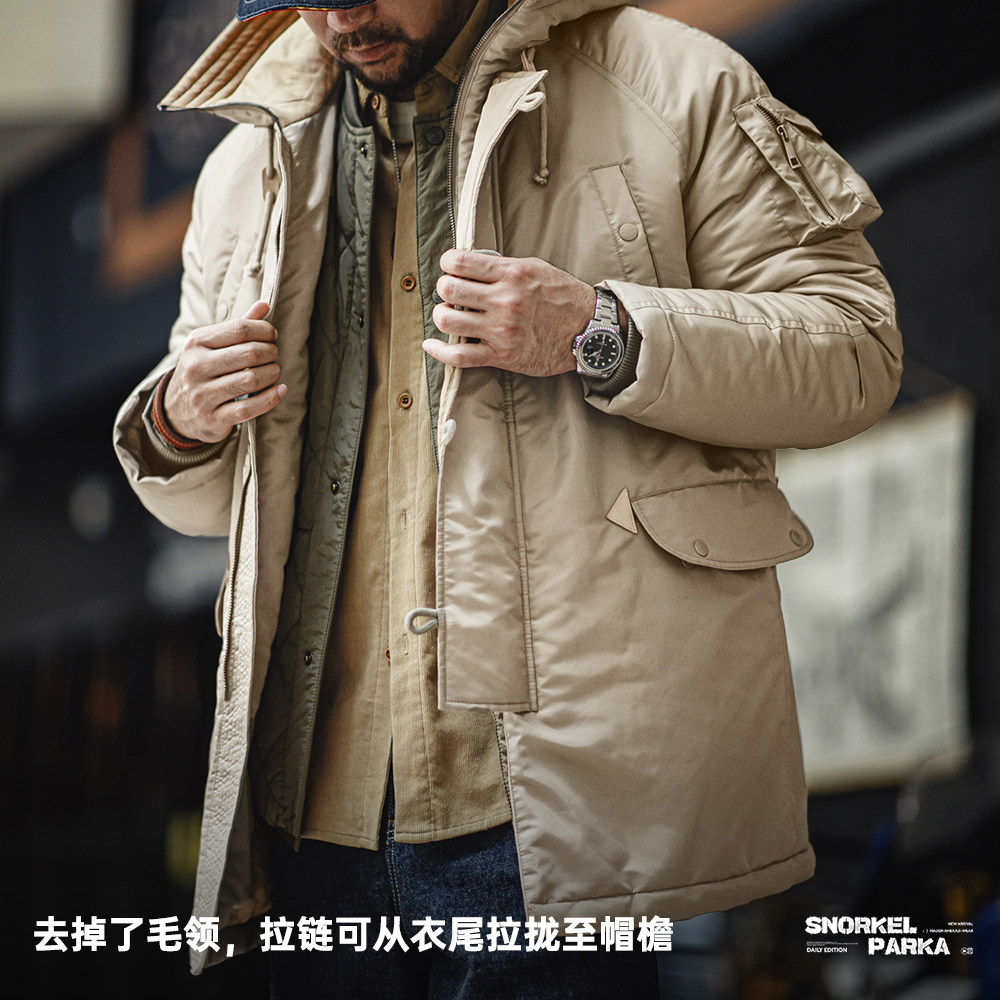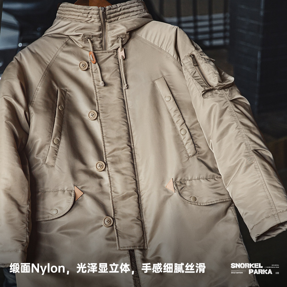 马登工装 美式N3B飞行员夹克棉服军事风加厚中长款连帽外套男秋冬