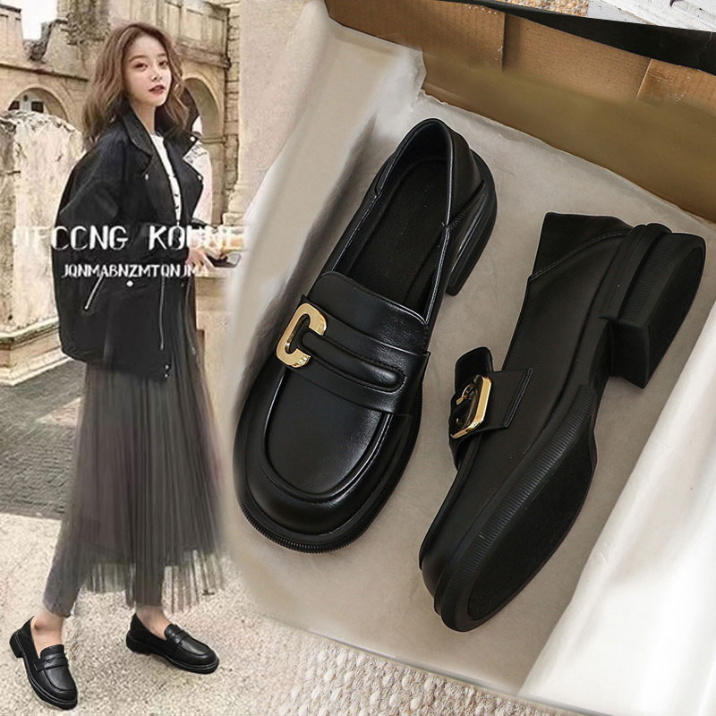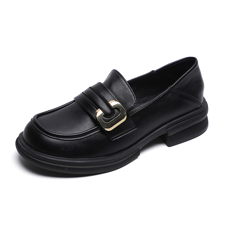 真皮软底乐福鞋女英伦黑色小皮鞋
