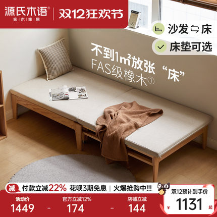 源氏木语全实木折叠沙发床单人床客厅小户型橡木两用可伸缩沙发