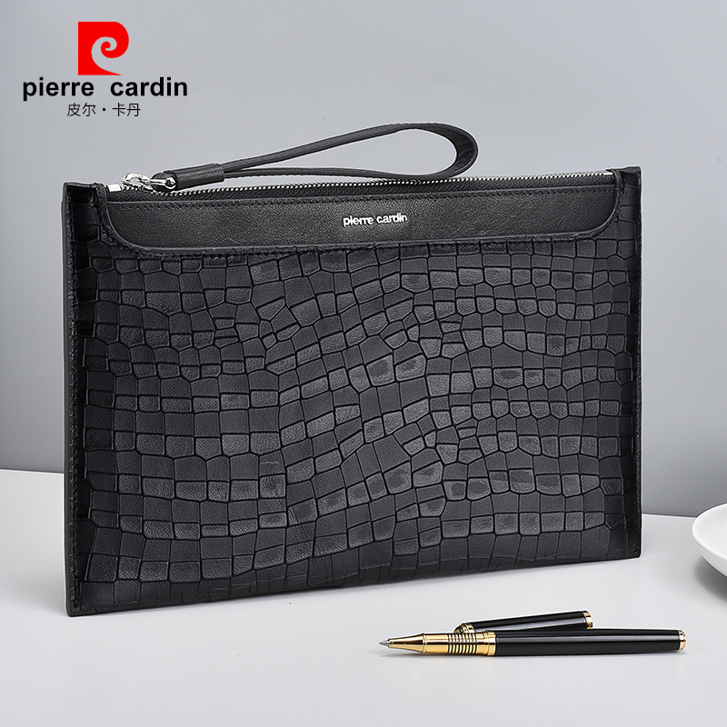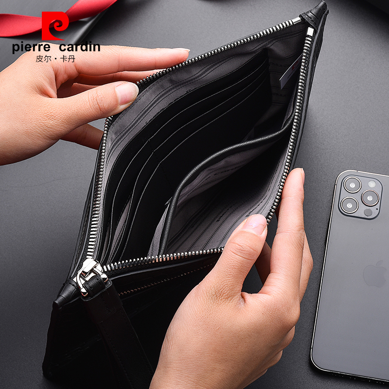 皮尔卡丹男士手包真皮手拿包休闲软牛皮信封包潮男时尚手抓包夹包