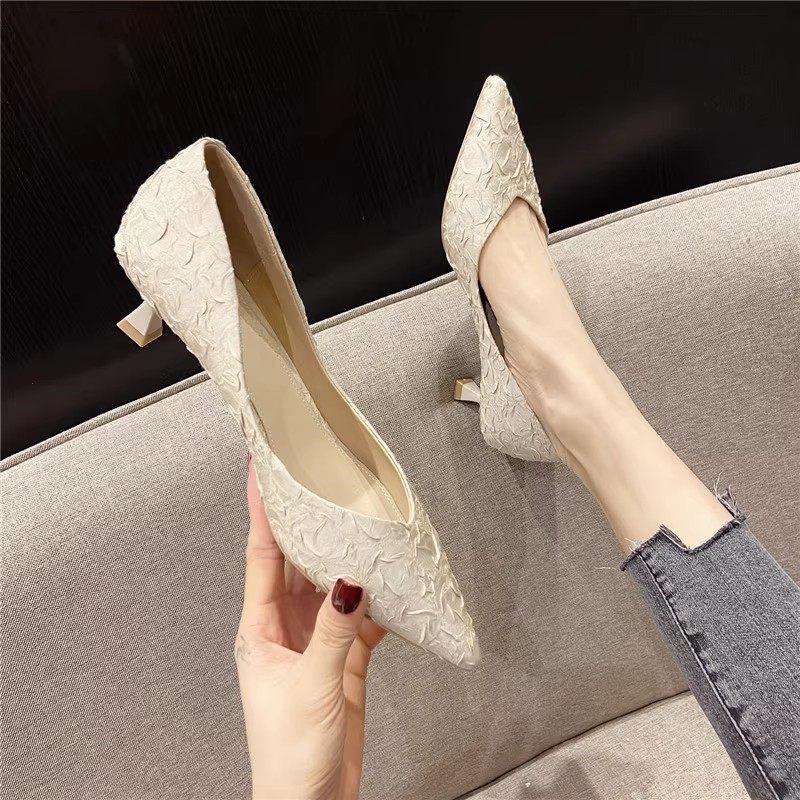 2025新款低跟单鞋女细跟小跟3CM软皮高跟鞋猫跟尖头职业工作鞋女
