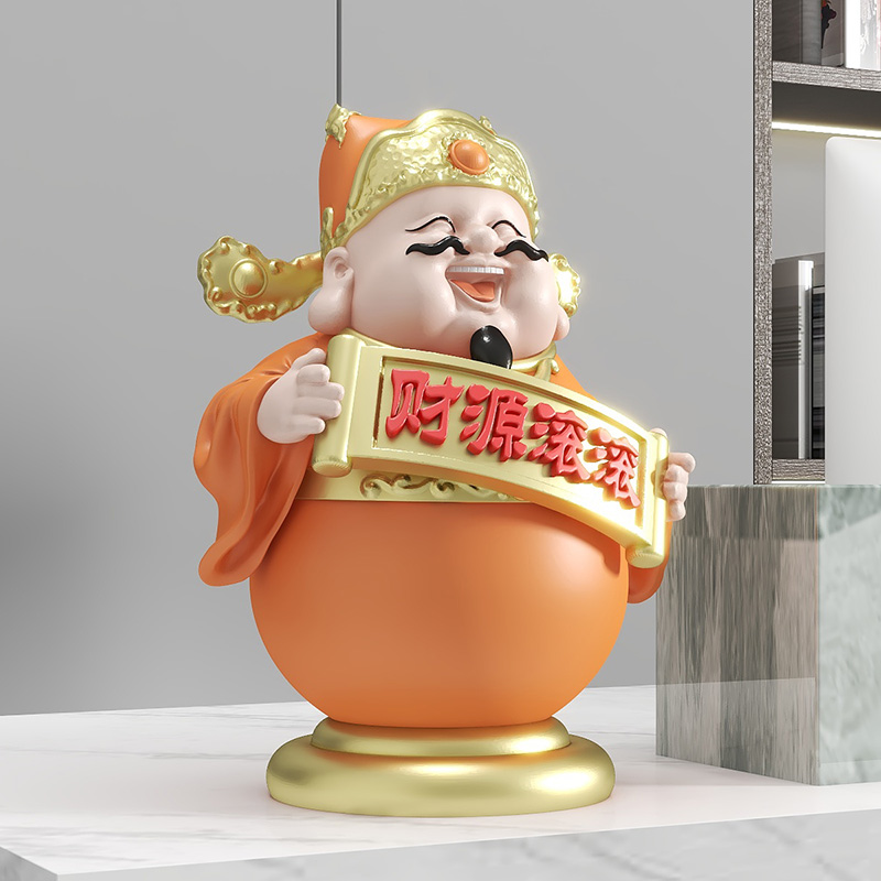 财源滚滚财神摆件工位招财店铺前台开业礼物高档新中式乔迁新居