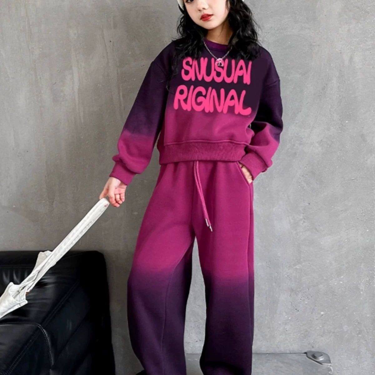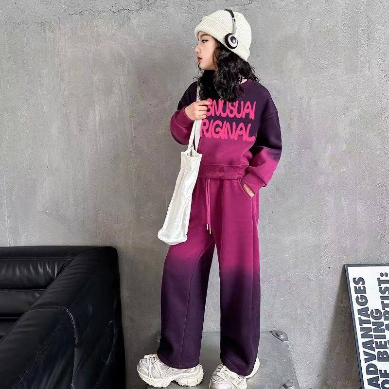 女童卫衣套装春秋装2025新款洋气中大童儿童渐变色女孩时髦两件套