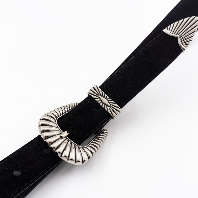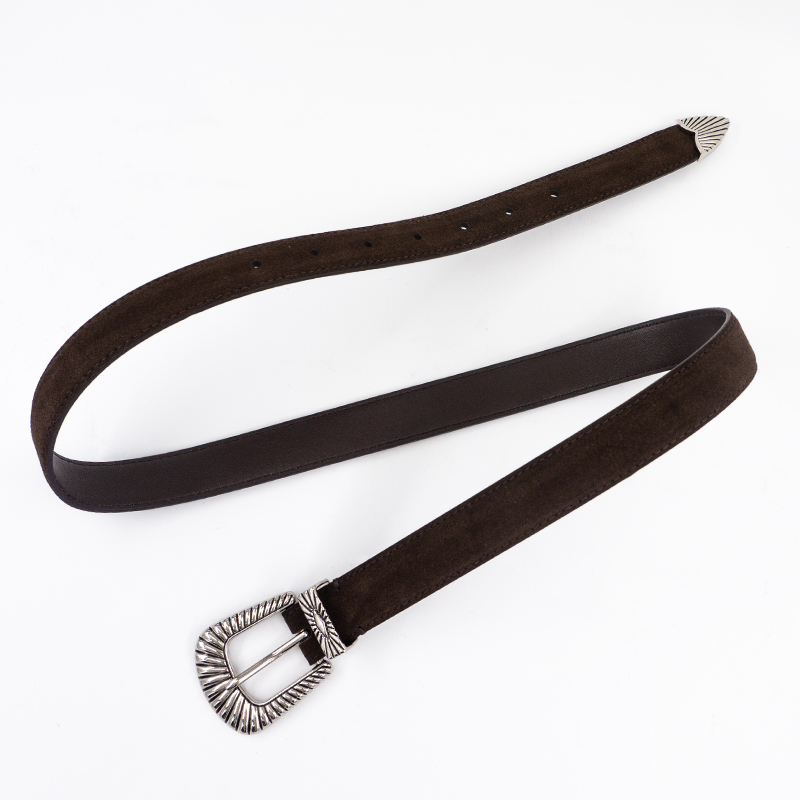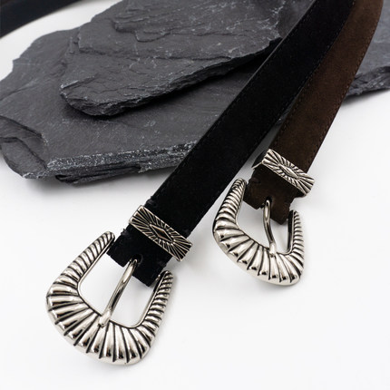 废土风做旧银扣头层牛皮皮带金属装饰扣男女通用真皮腰带反绒皮