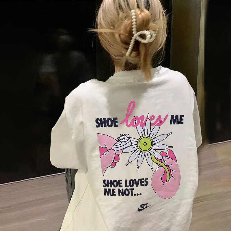 白色T恤Nike耐克纯棉印花短袖男针织圆领运动装夏季新款休闲上衣