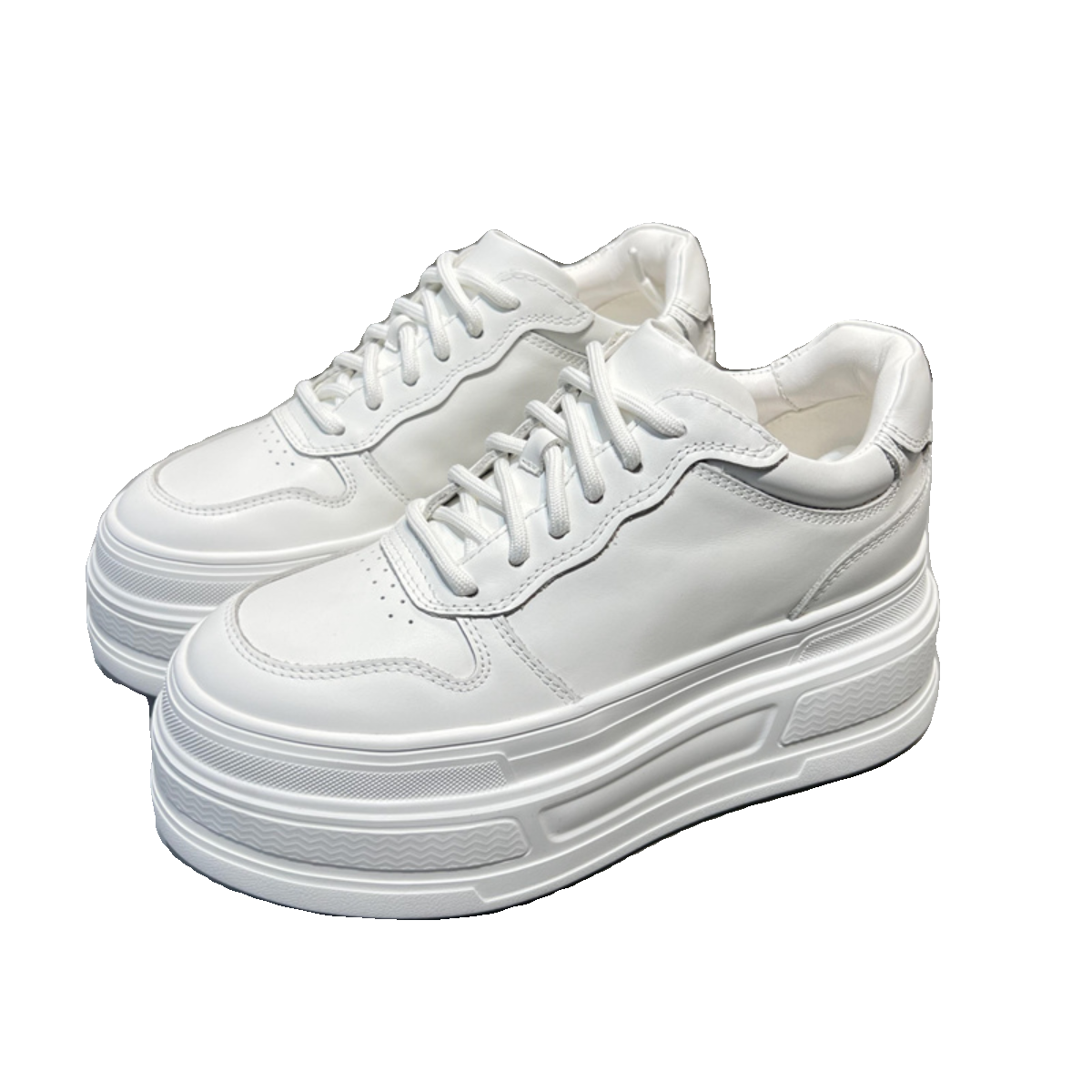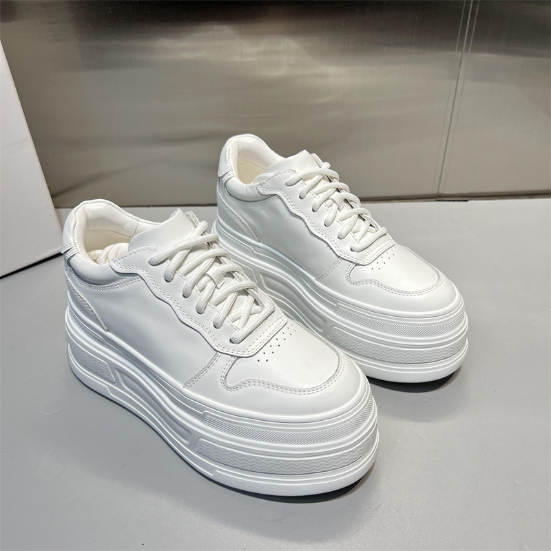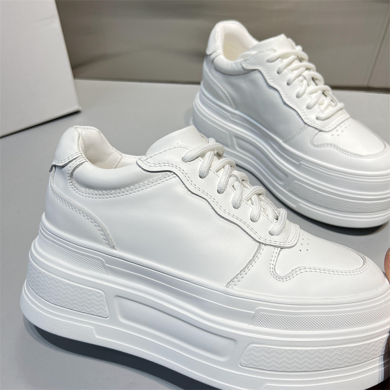 欧洲站真皮小白鞋女2025秋新款欧货圆头系带厚底增高休闲运动鞋潮