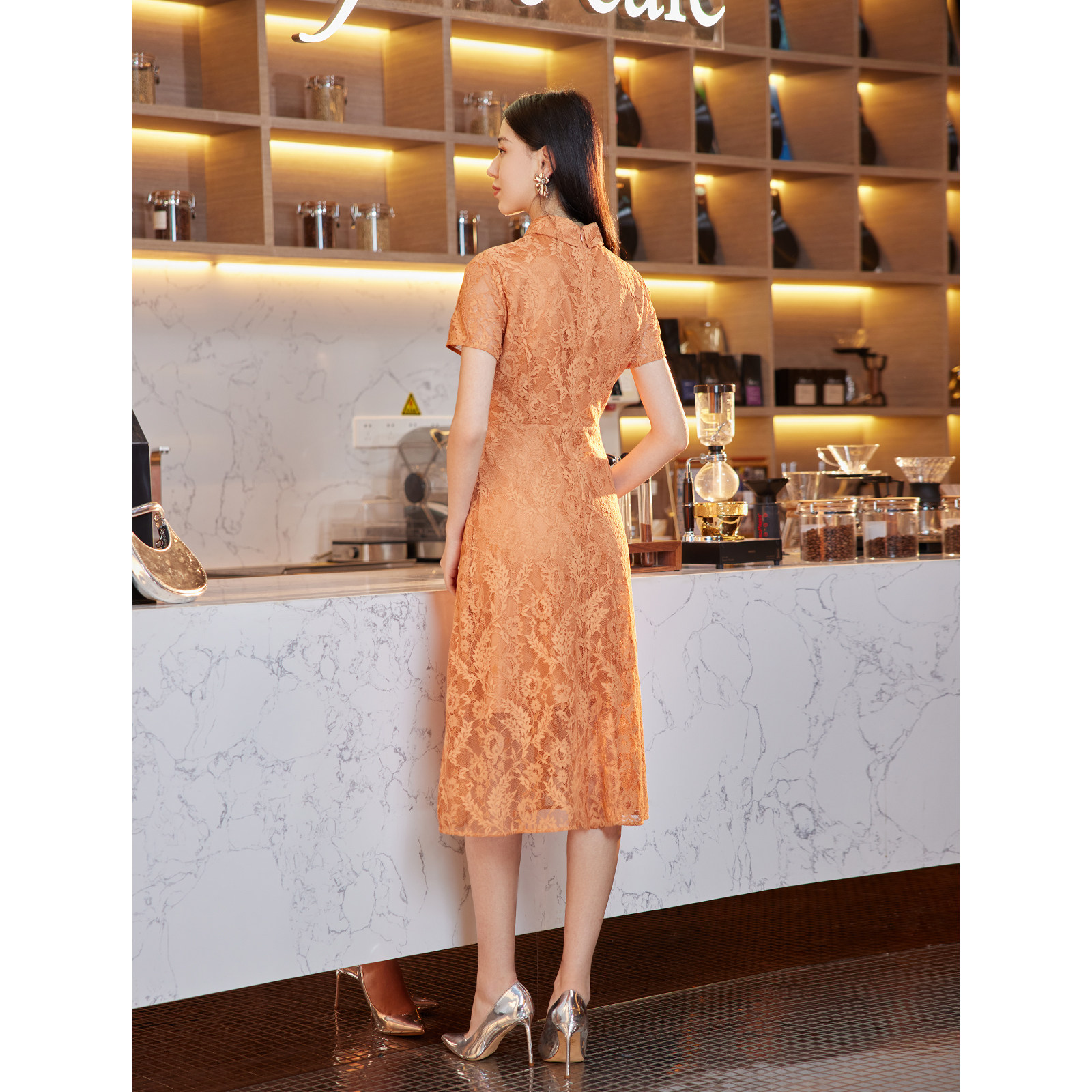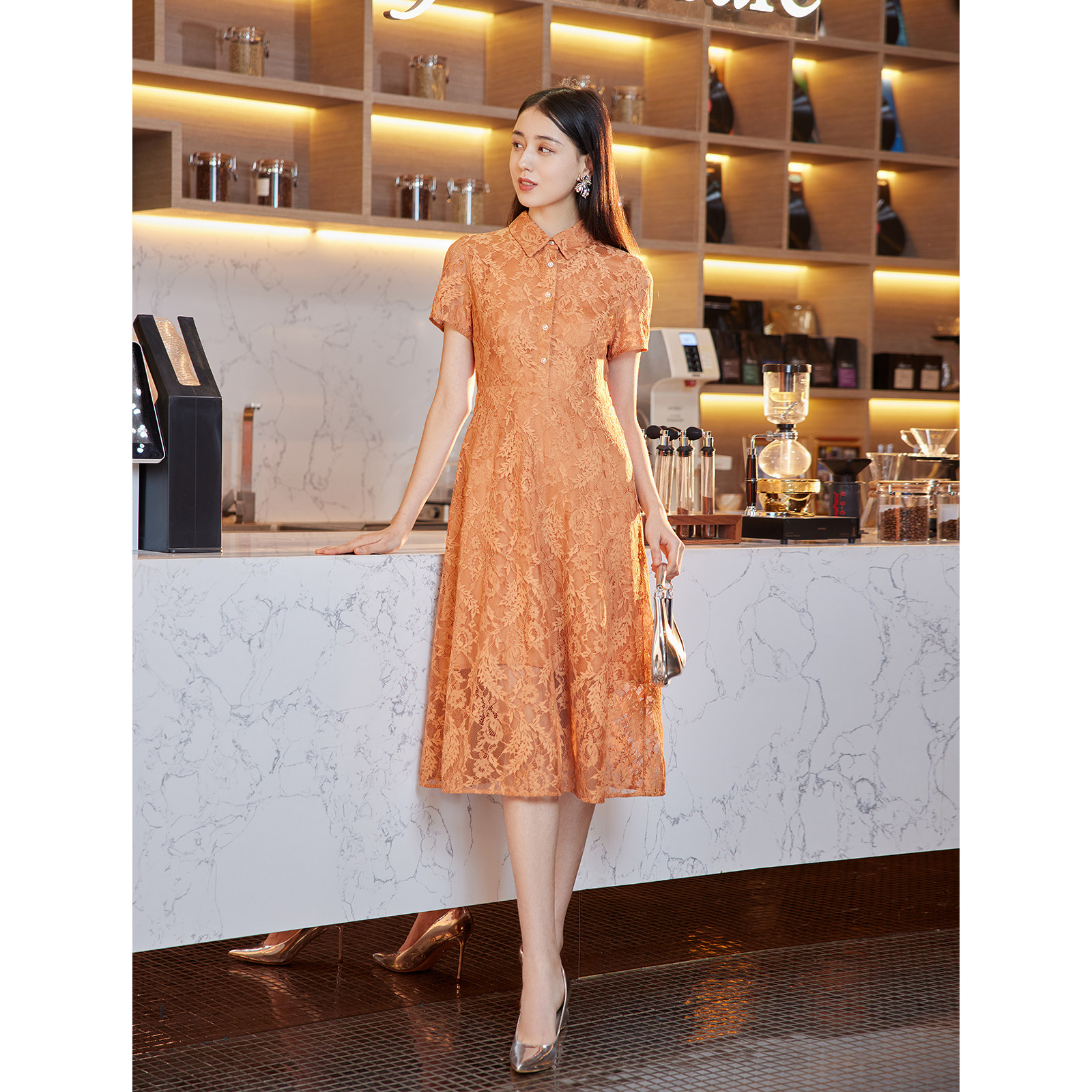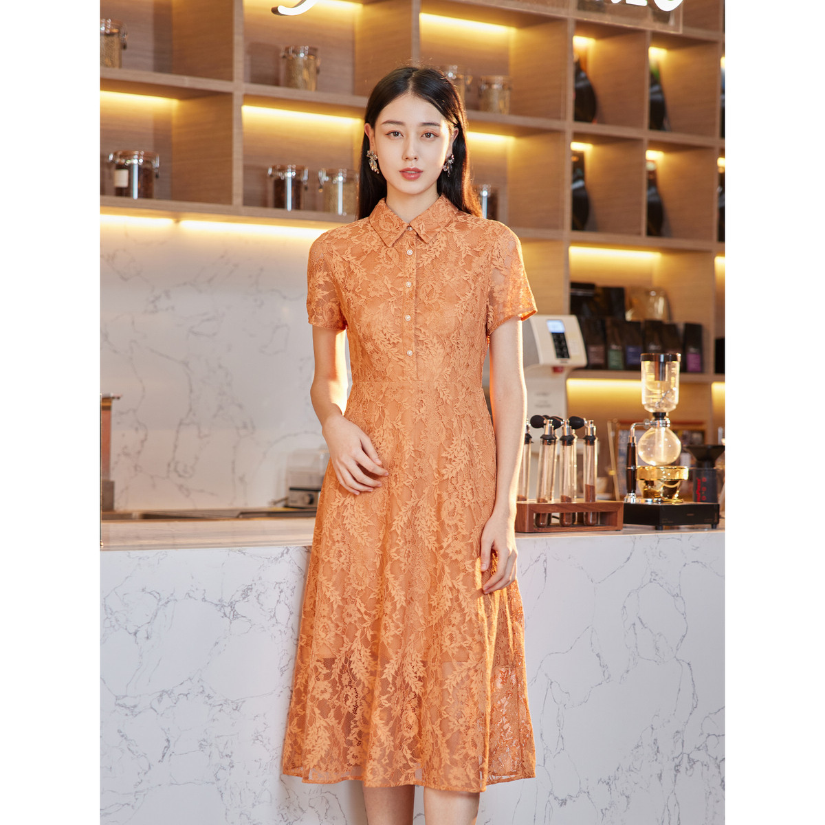 【商场同款】BBLLUUEE/粉蓝衣橱2025夏装东方感刺绣蕾丝连衣裙女