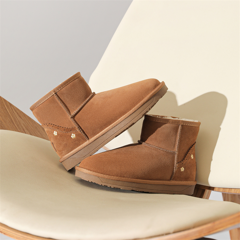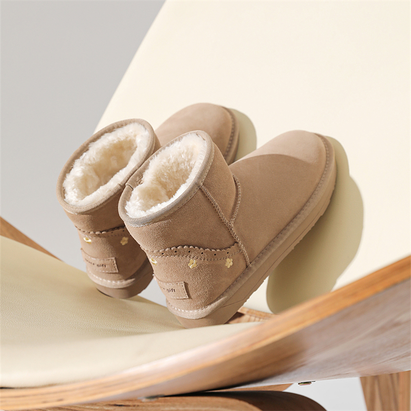 Grace gift真皮雪地靴女冬新款加绒加厚保暖可爱棉鞋时尚百搭短靴