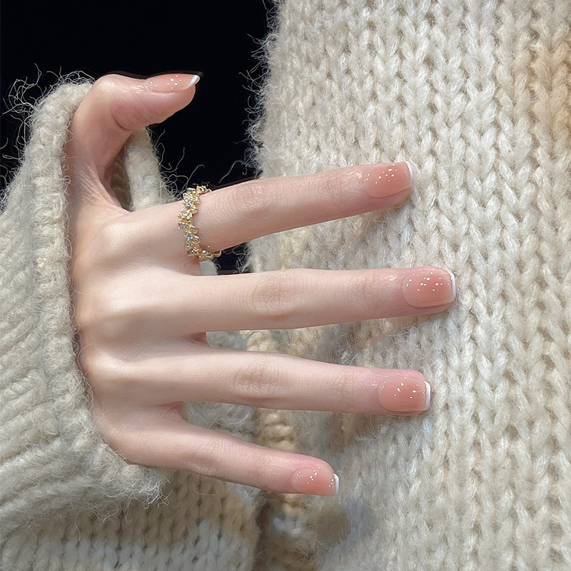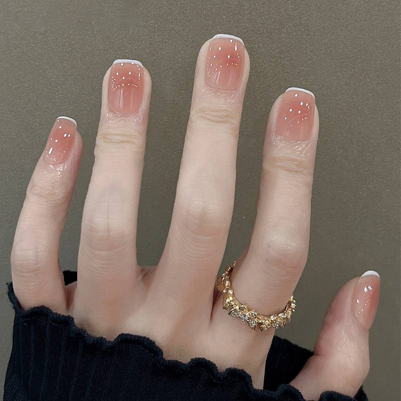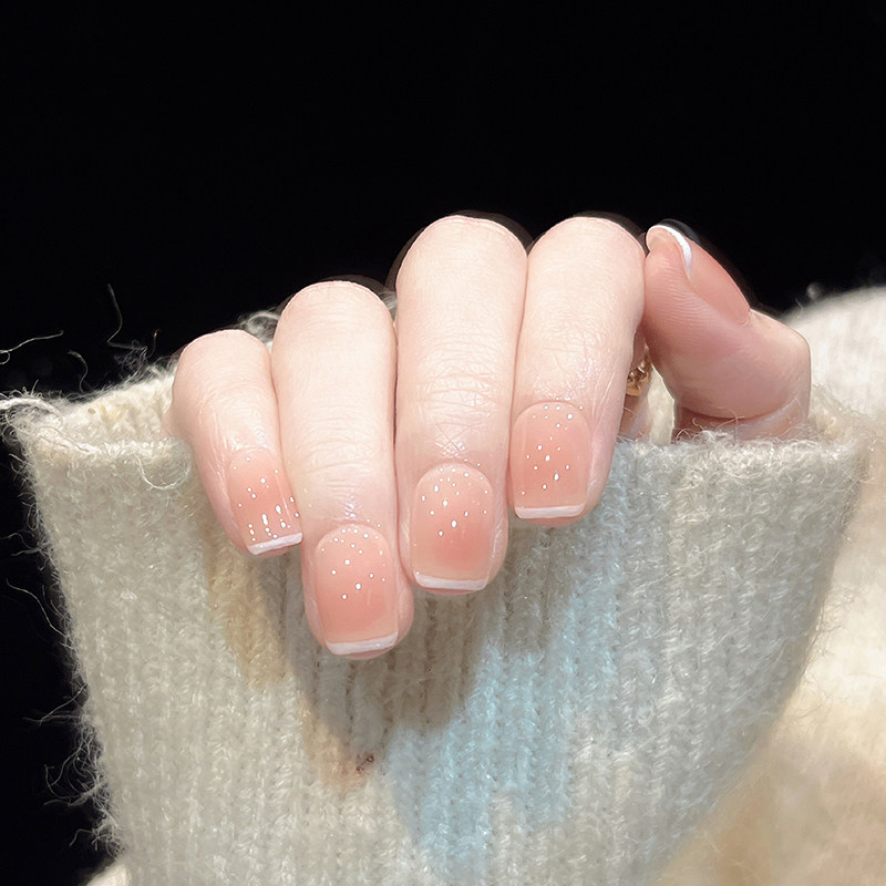纯手工穿戴甲法式裸色高级感2026年新款夏季短款新娘美甲曼城蜜桃