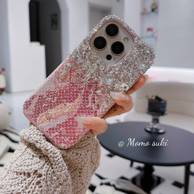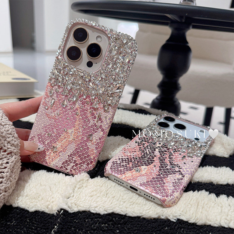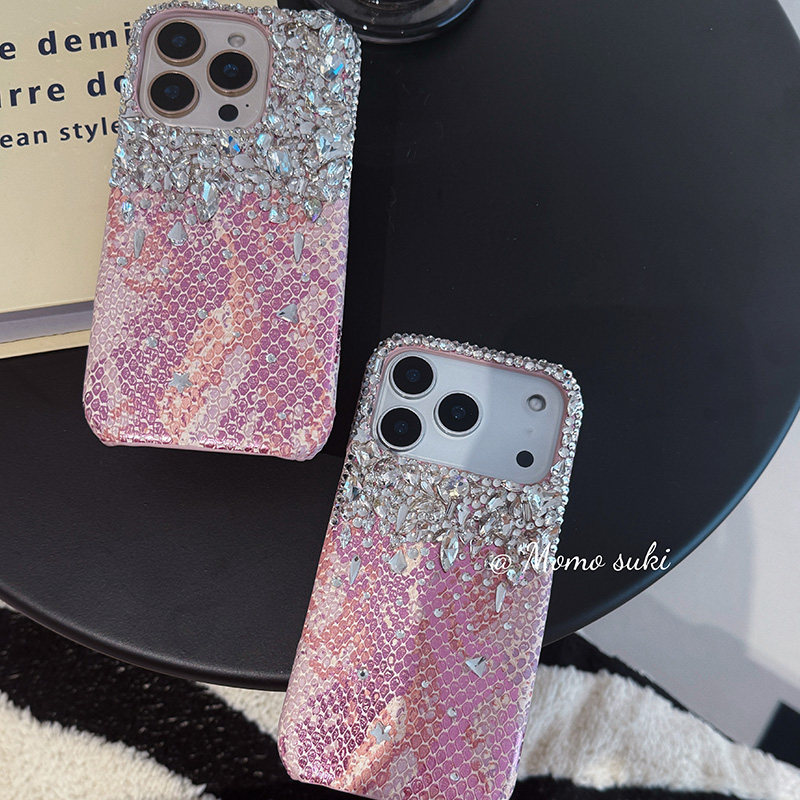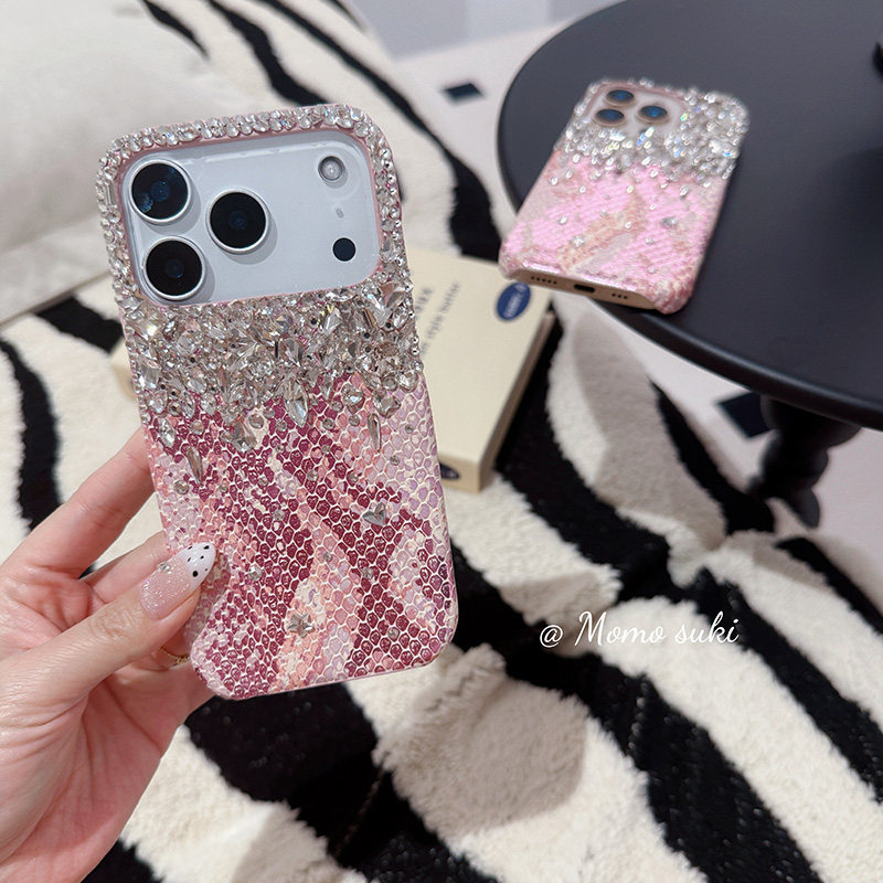 新款爆闪17Promax轻奢粉皮纹手机壳16Pro高级立体水钻保护套15/14