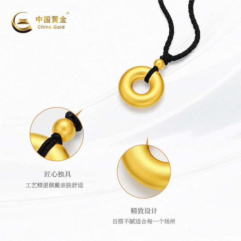 【中国黄金官方店】黄金吊坠古法素面传世平安扣气质新品首饰