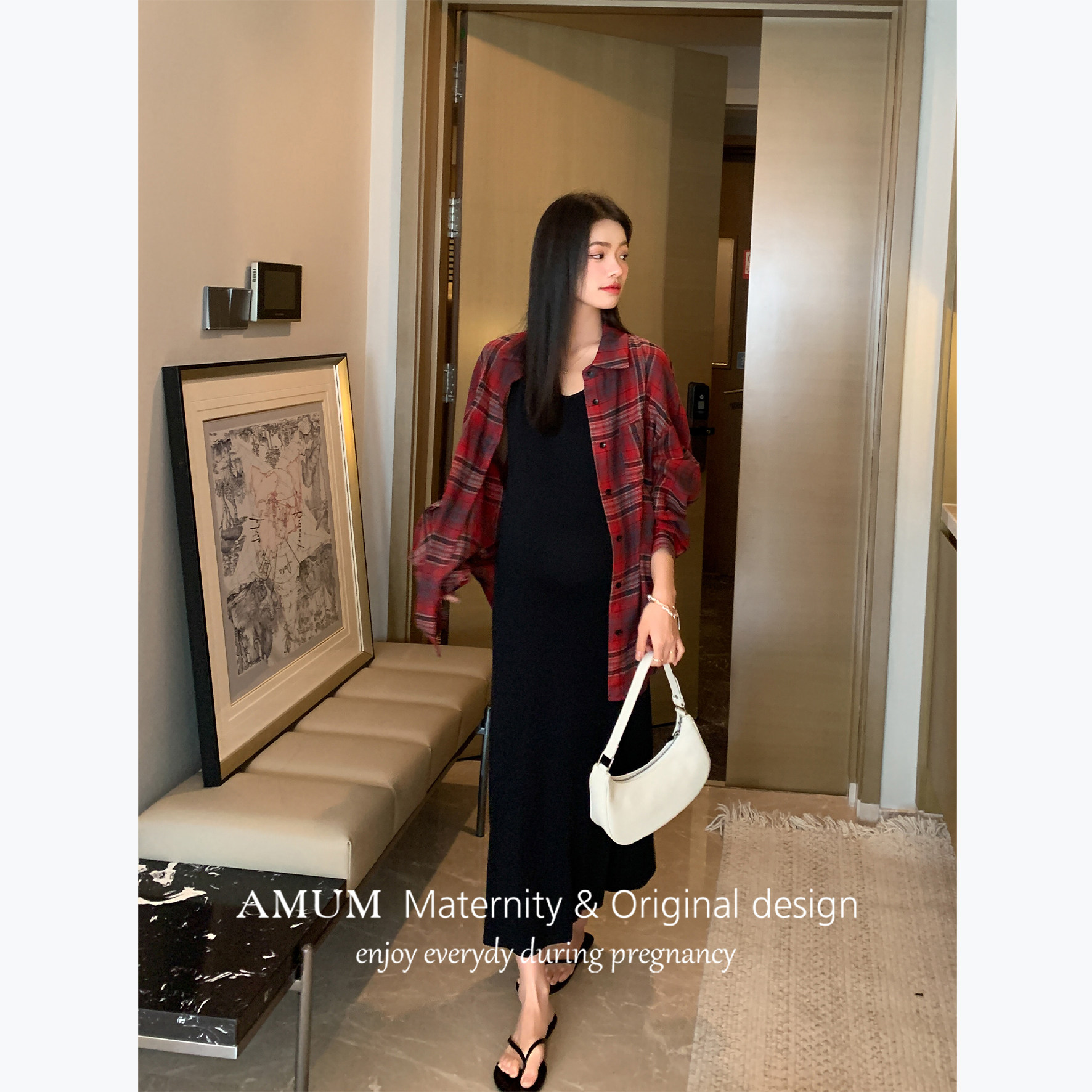 ◆AMUM孕妇装◆慵懒Tag~包容性强休闲柔软长款百搭吊带打底连衣裙