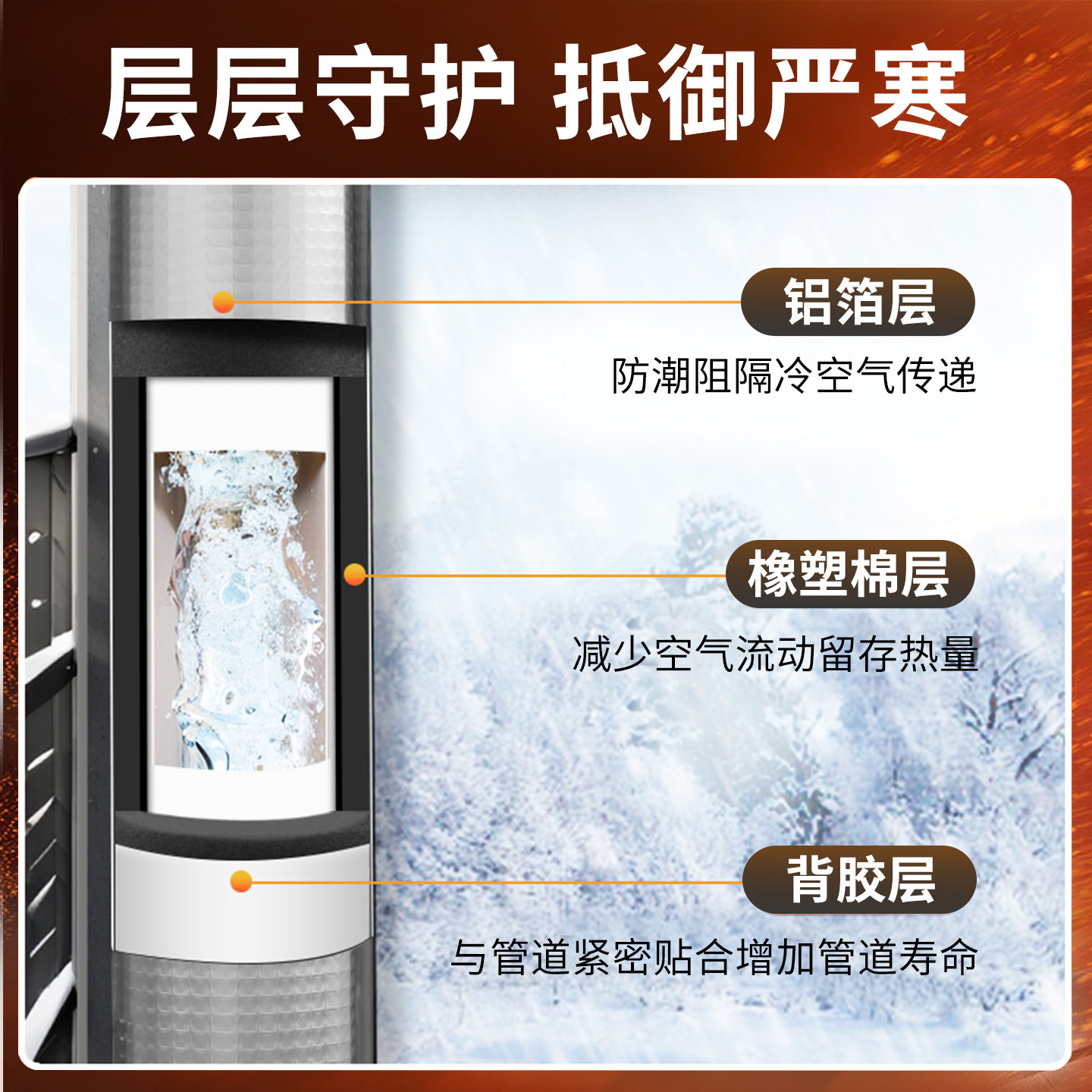 水管保温棉自粘式铝箔太阳能室外防冻自来水管道橡塑保温管套开口