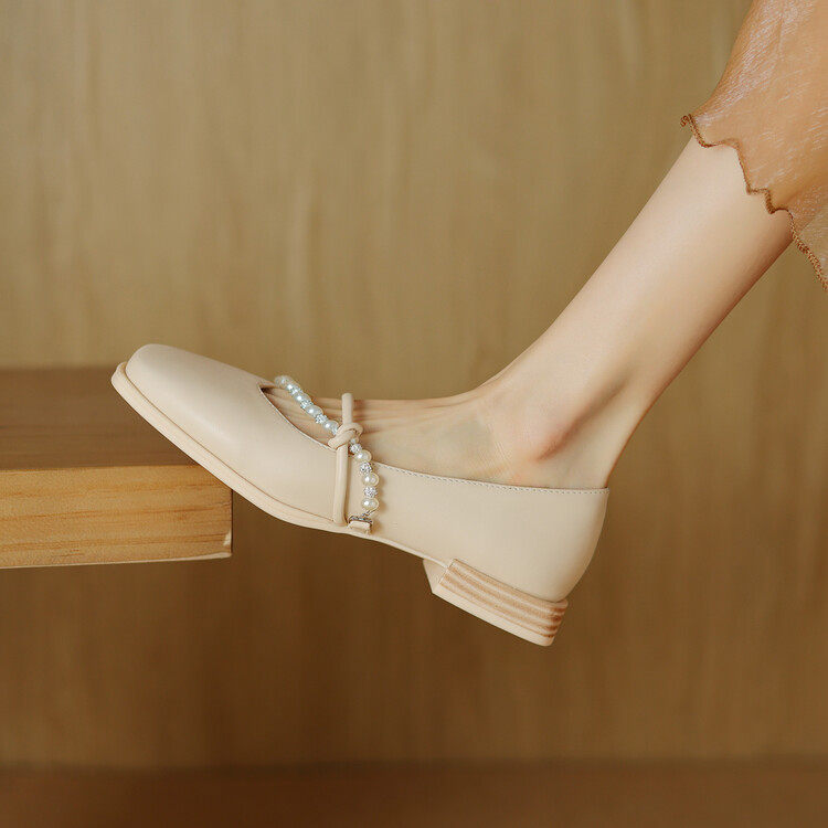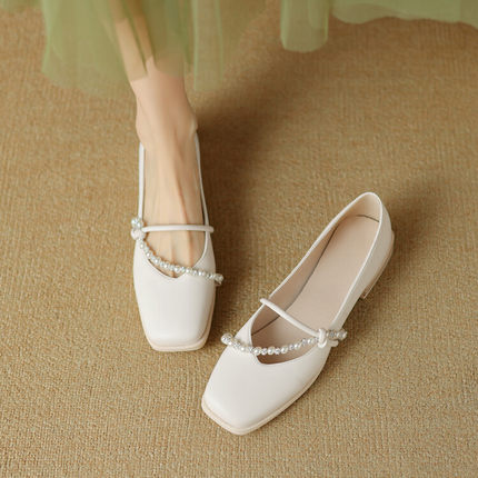 温柔风法式配裙子软皮珍鞋单鞋浅口珍珠女软底玛丽平底鞋舒适女鞋