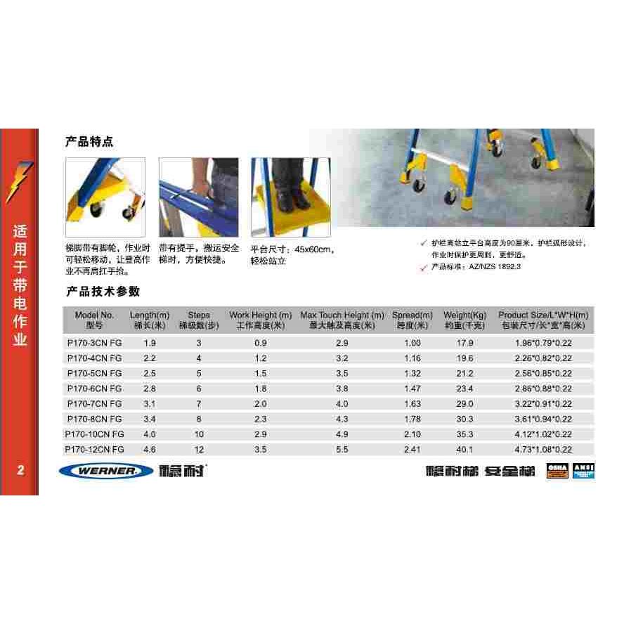 稳耐玻璃钢人字梯P170-6CN FG P170-10CN P170-3CN P170-8CN