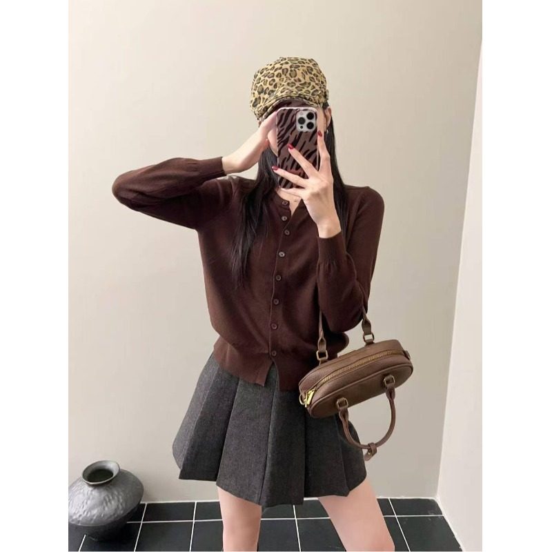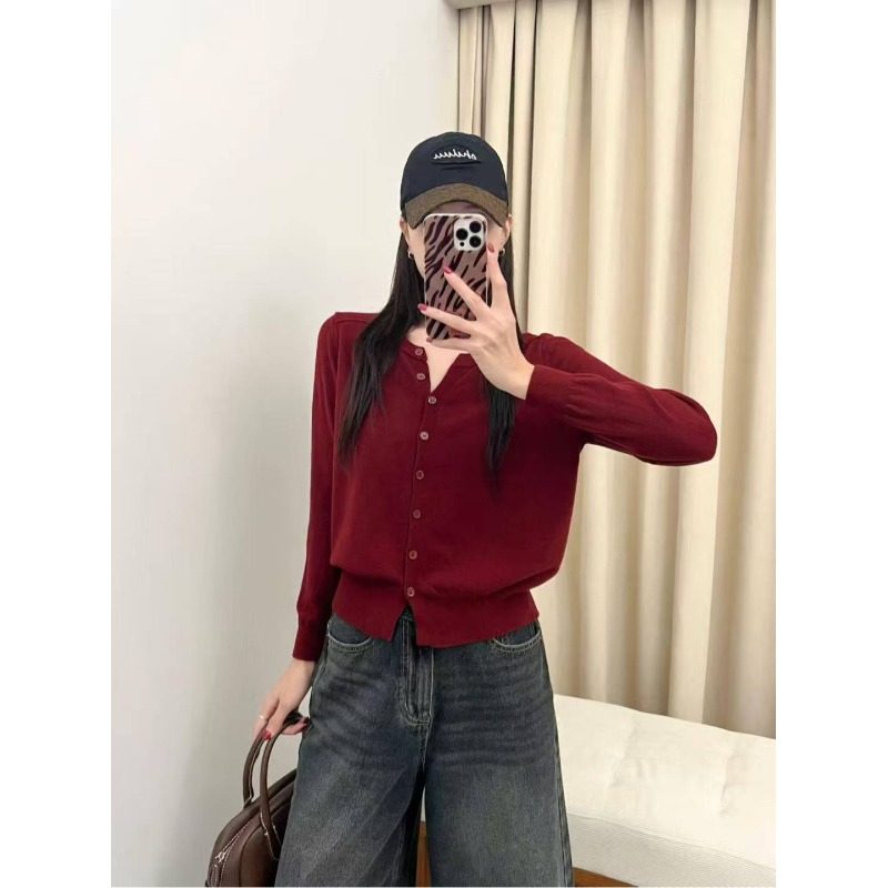早秋软糯新款薄款针织开衫女韩版圆领宽松短款小外搭毛衣外套上衣