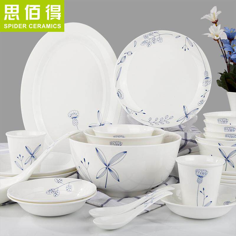 韩式结婚送礼唐山骨瓷餐具套装58头家用碗碟盘套装陶瓷器组合