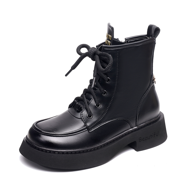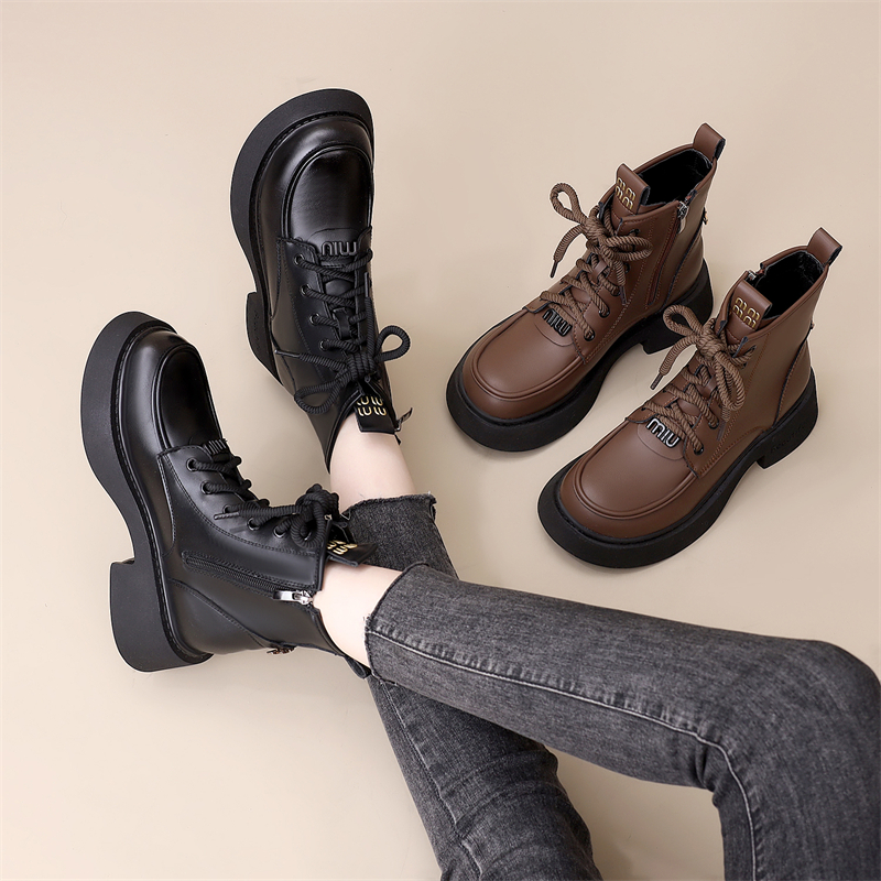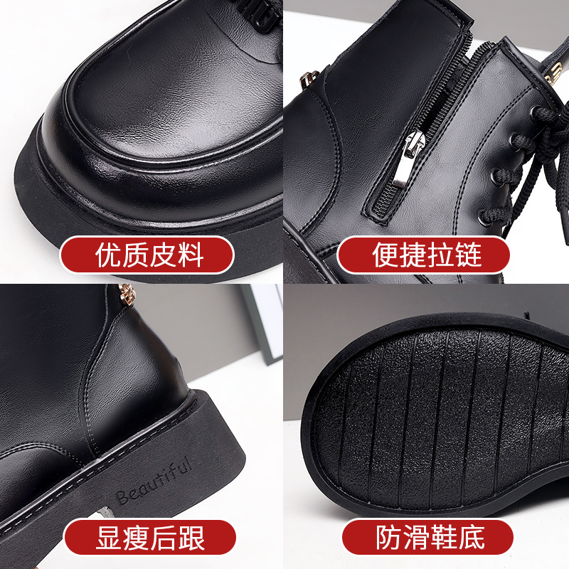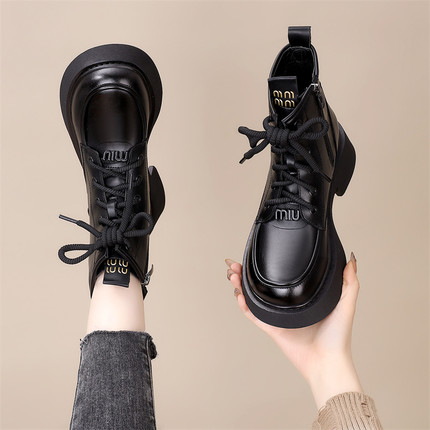 2025秋冬新款平底马丁靴女复古系带时尚百搭英伦风显脚小加绒短靴