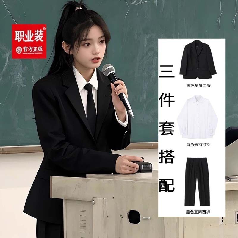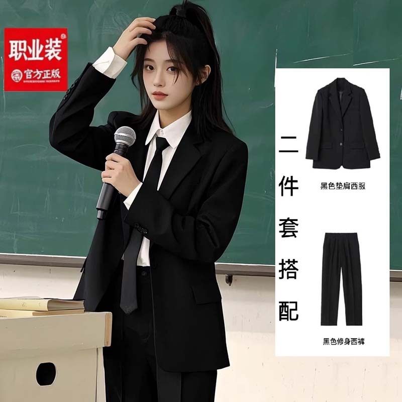西装教资面试套装女外套直筒裤高级感通勤职业面试西服正装工作服
