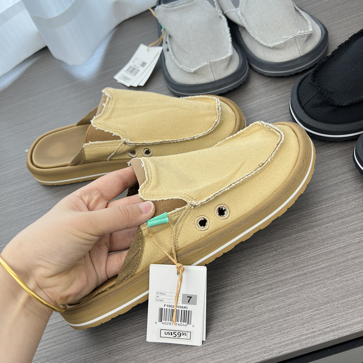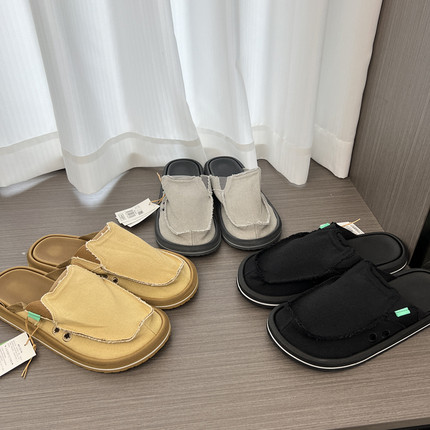 不可错过!有大码!外贸男士夏季透气轻便一脚蹬帆布休闲包头拖鞋