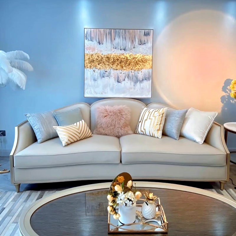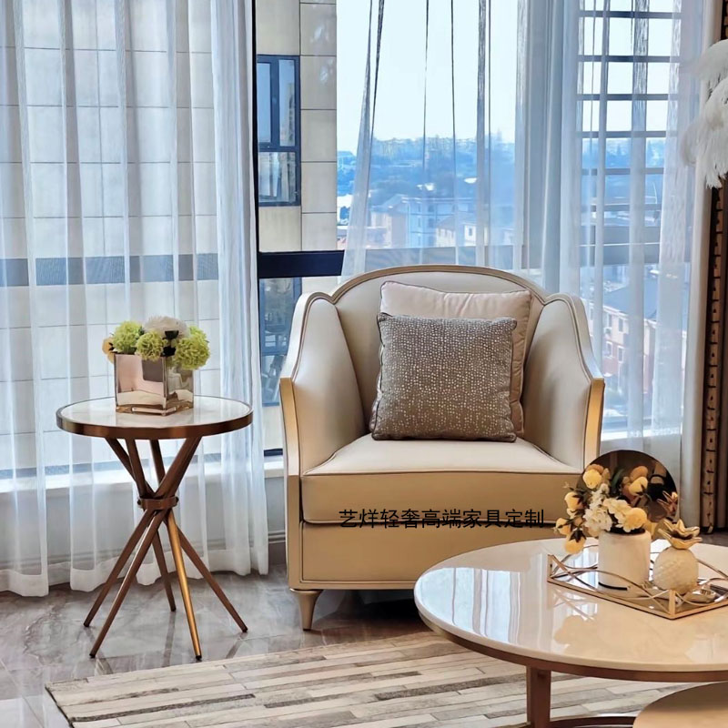 美式轻奢实木花瓣沙发现代简约沙发茶几组合别墅小户型客厅家具