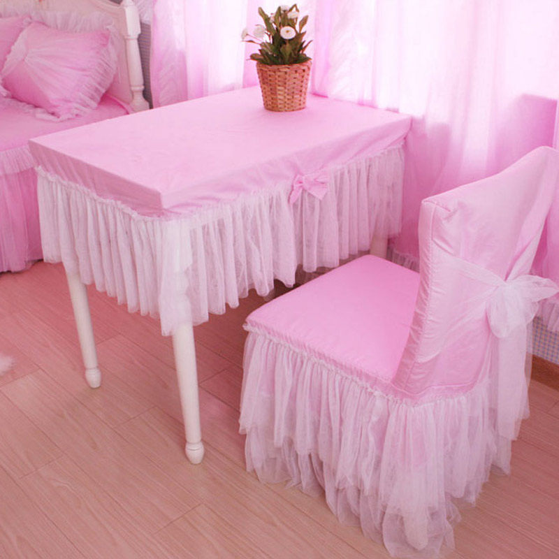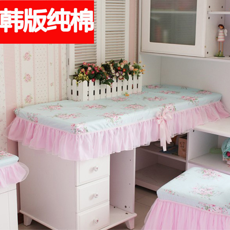 韩版田园梳妆台布床头柜罩桌布茶几布盖巾电脑桌布艺罩套蕾丝粉色
