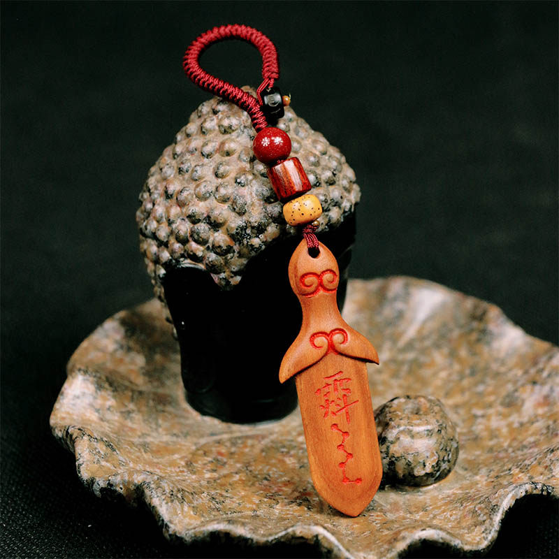 老桃木朱砂剑中式手工桃木挂件