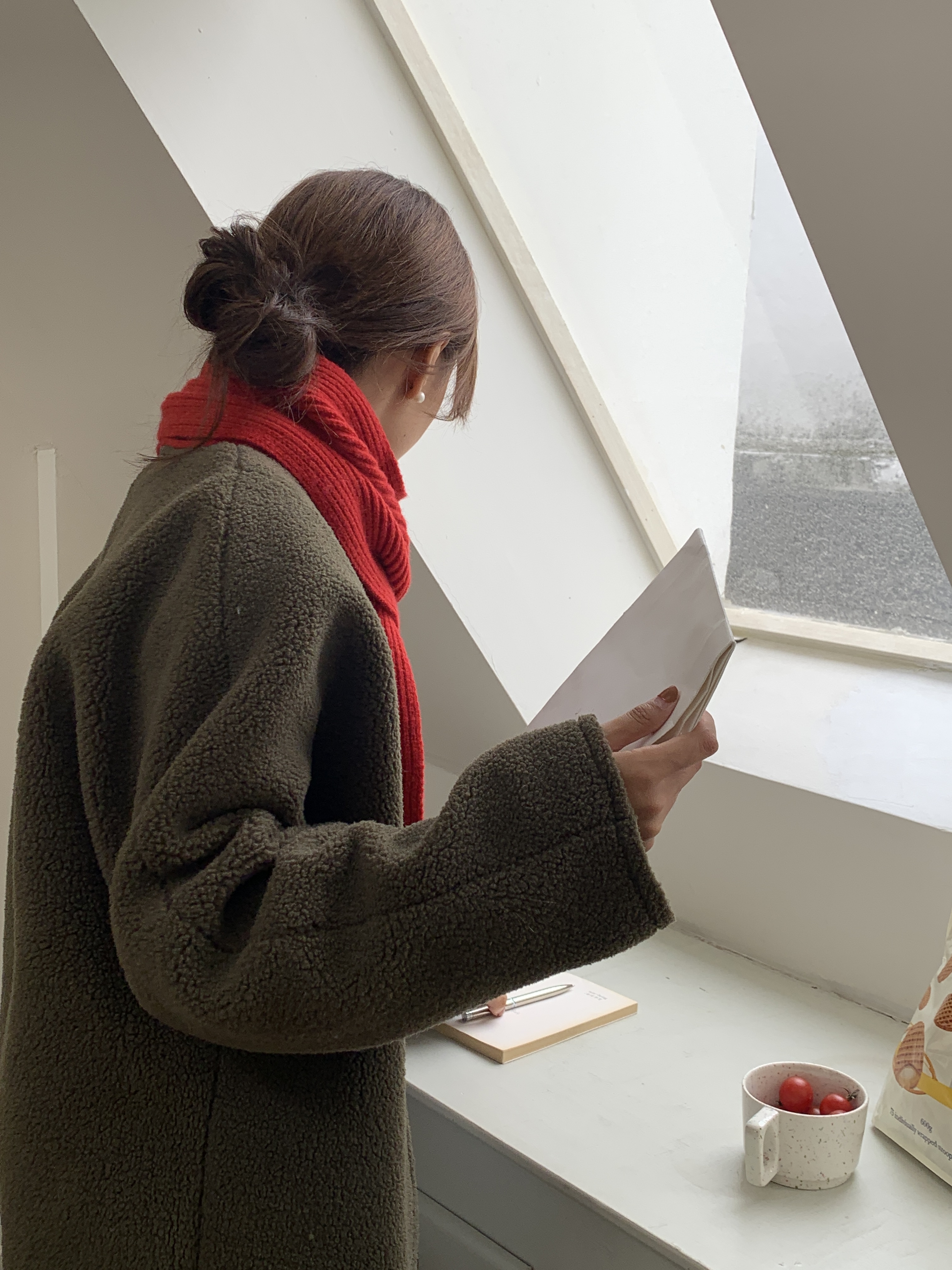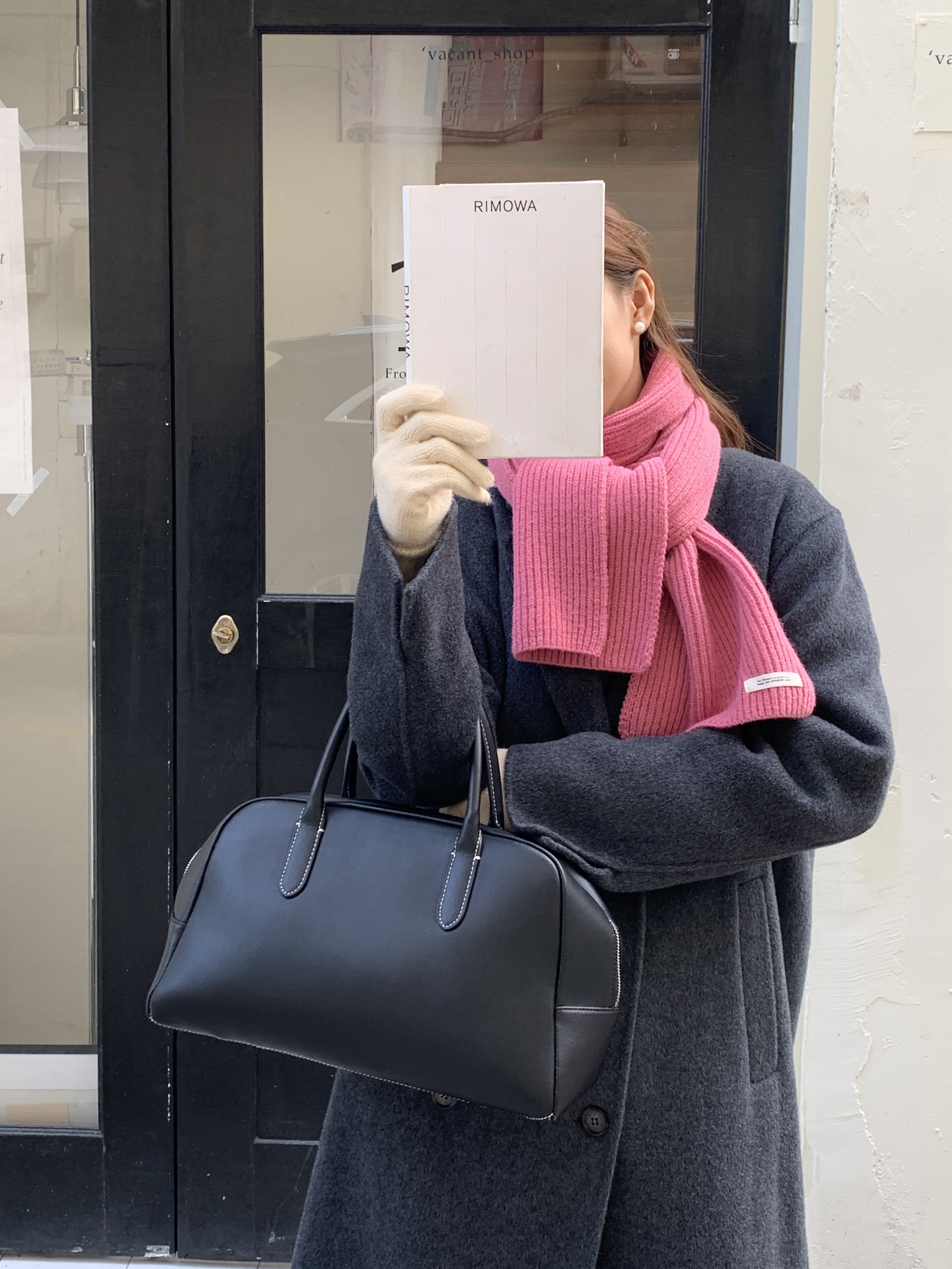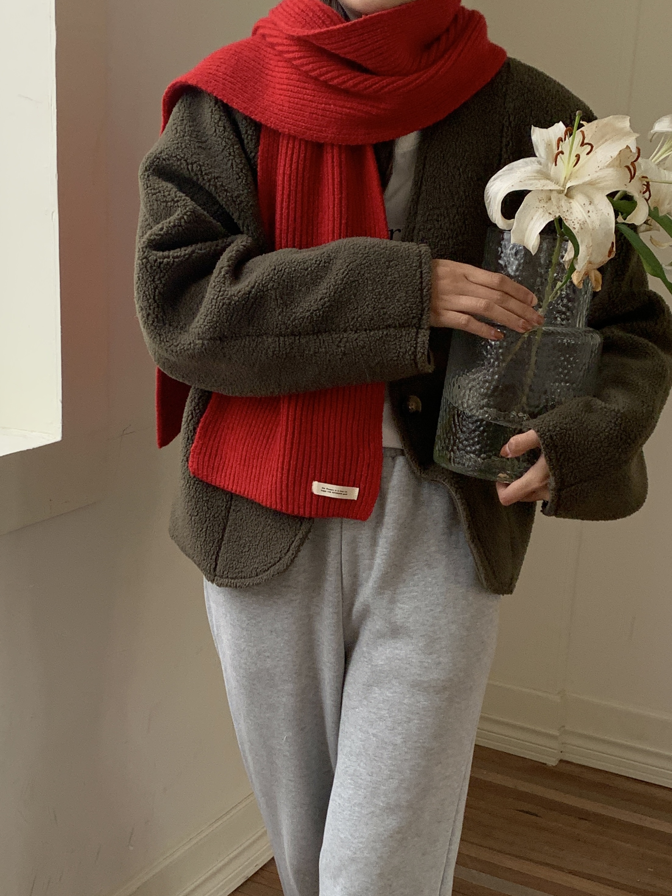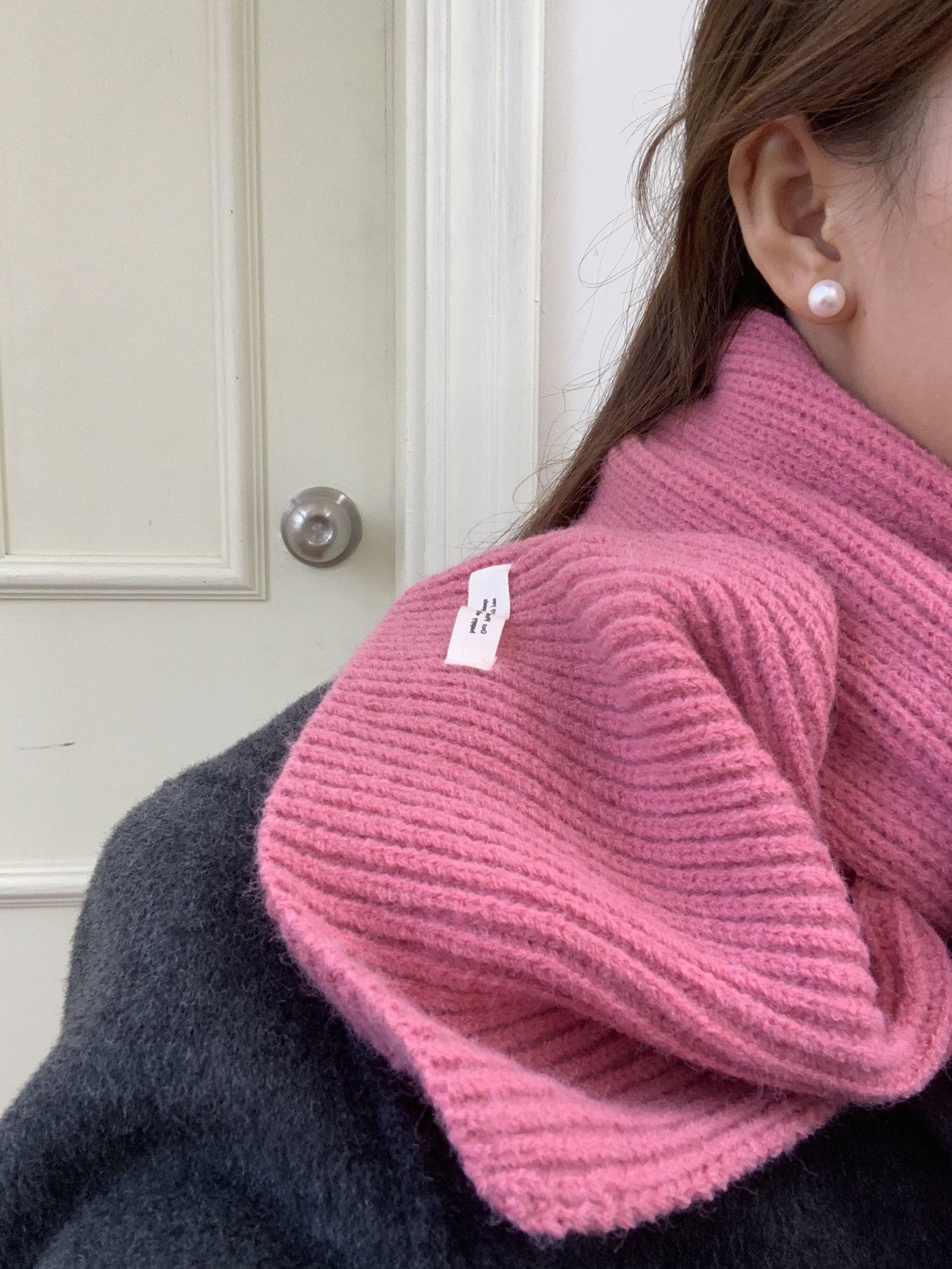 芝士商店~粉色毛线围巾女韩系秋冬纯色复古百搭针织骑行保暖围脖