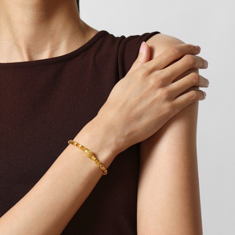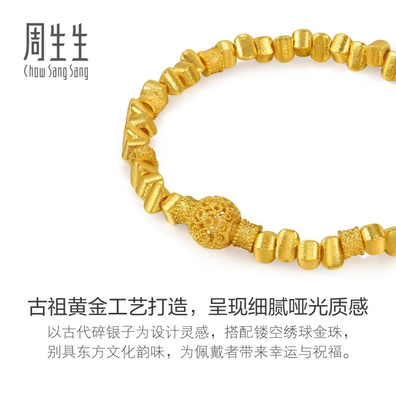 圣诞周生生东方古祖足金绣球盘缠金手串碎金子古法黄金手链96081B