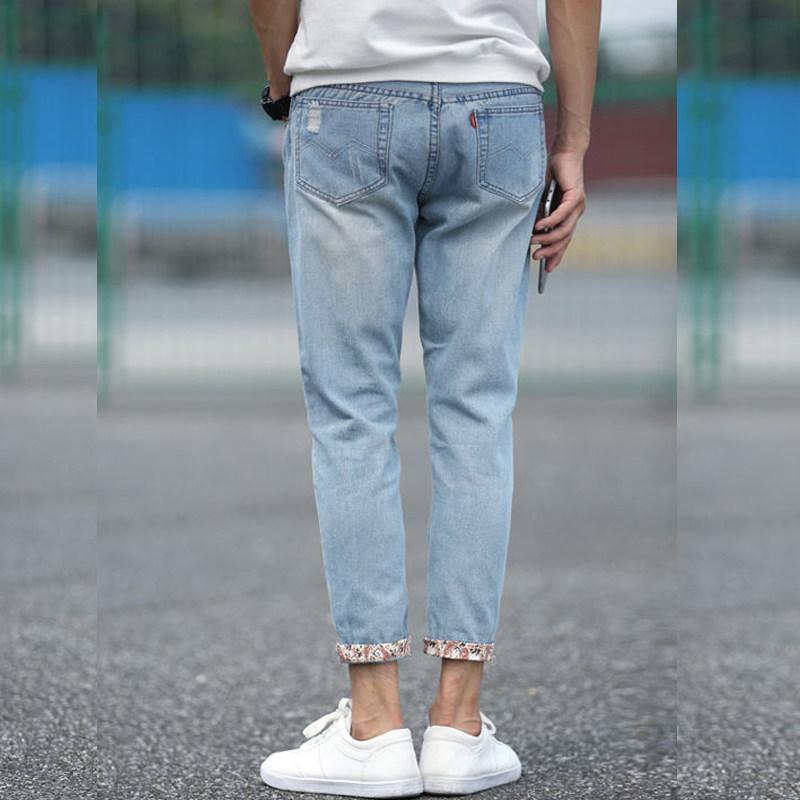 9分牛仔裤男青少年男裤破洞学生潮流九分裤子设计感小众8分裤复古