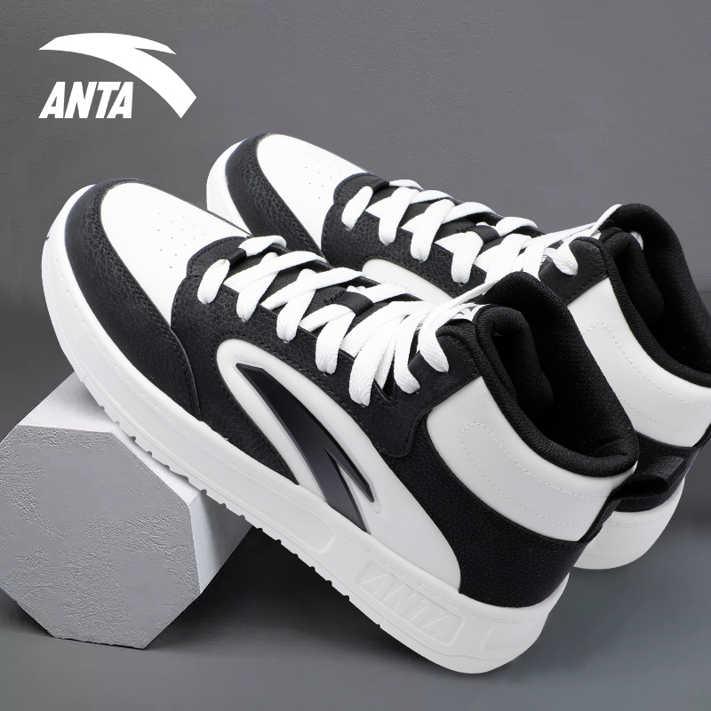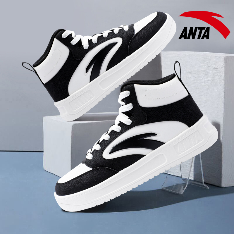 安踏男鞋高帮板鞋秋季2025新款官方正品休闲男经典黑白潮流运动鞋